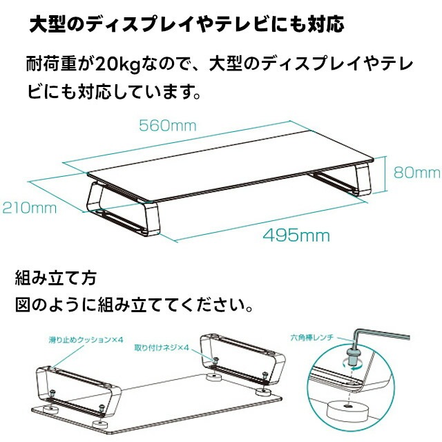耐荷重が20kgなので、大型のディスプレイやテレビにも対応しています。