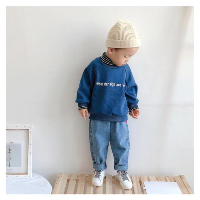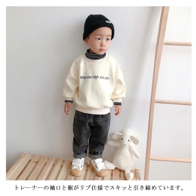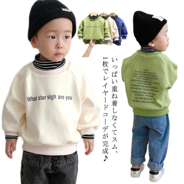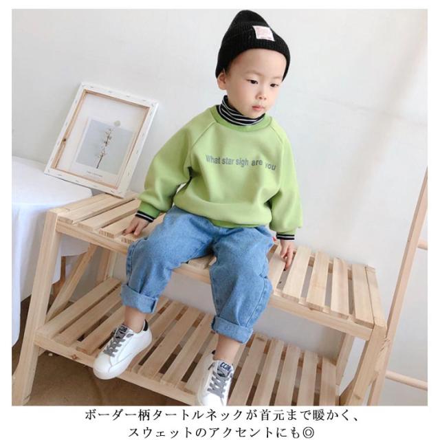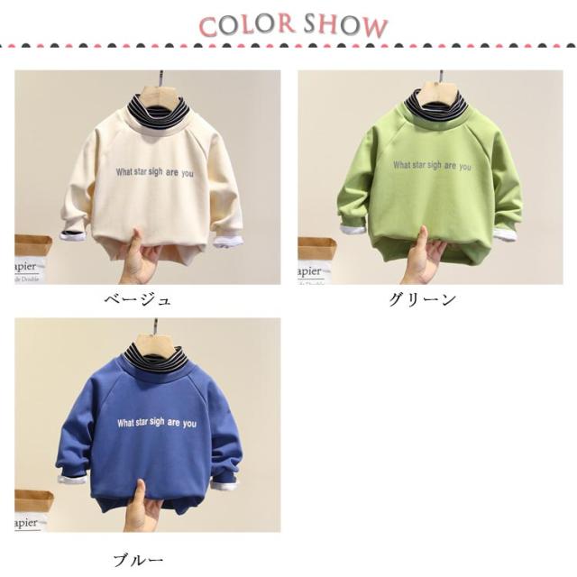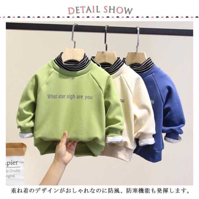 トレーナー 裏起毛 キッズ 子供服 トップス パーカー プルオーバー ハーフハイネック フェイクレイヤード 重ね着風 男の子 ガールズ ボーダー柄 お出かけ 秋 冬 防風 保温 80 90 100 110 120 130