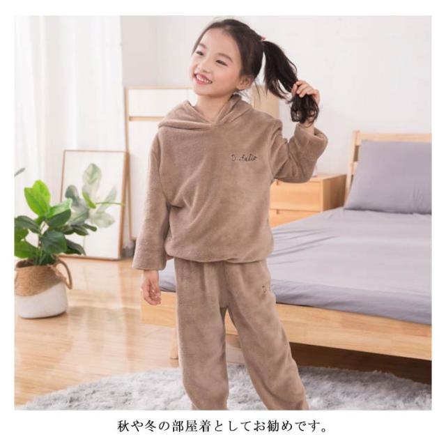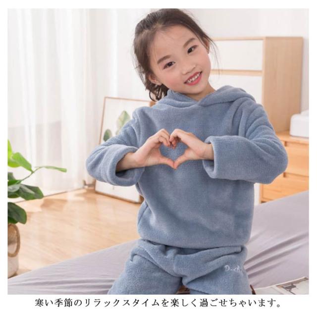 パジャマ キッズ セットアップ 裏ボア ルームウェア ナイトウェア 上下セット トップス+パンツ 長袖 ズボン 男の子 女の子 秋 冬 ふわふわ 暖かい 可愛い 110 120 130 140 150