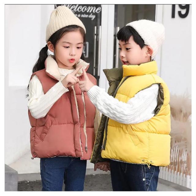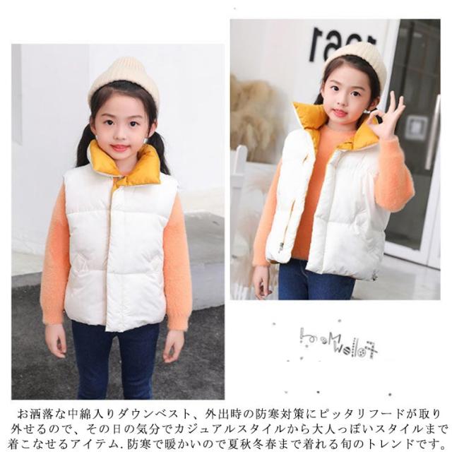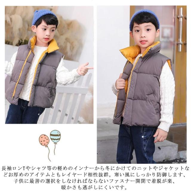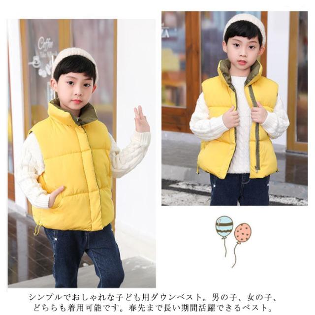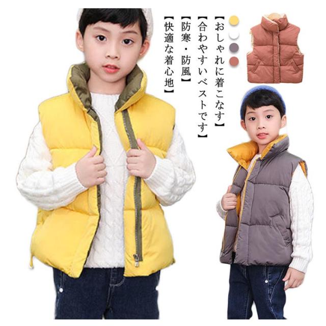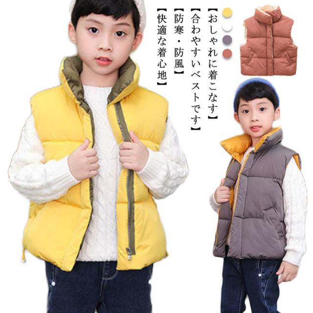 中綿ベスト ダウンベスト キッズ ベビー服 子ども アウター 防寒ベスト 無地 男の子 女の子 暖かい 軽量 ポケット付き インナーダウン 100 110 120 130 140 保育園 通学