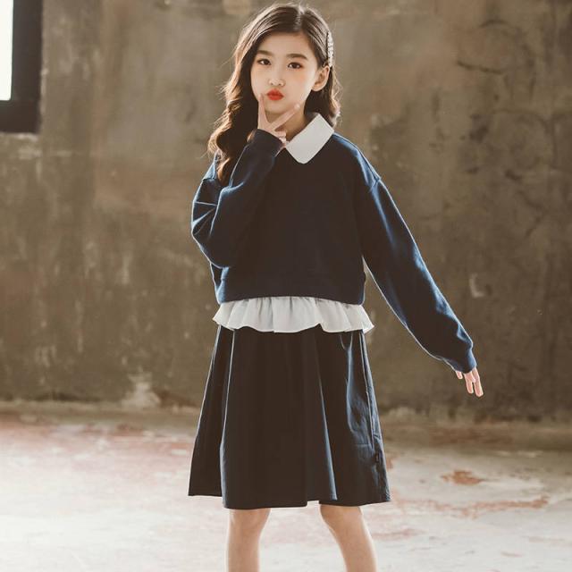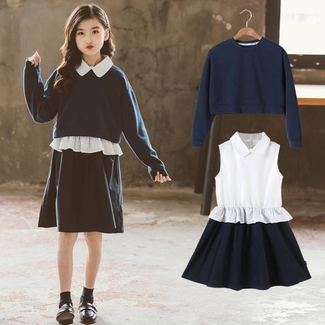 ワンピース 女の子 トップス ドレス 2点セット 子供 キッズ 長袖 制服 子ども服 子供ドレス 秋 冬 綿 おしゃれ 可愛い 学院風 入学式 卒業式 普段着 110-160cm
