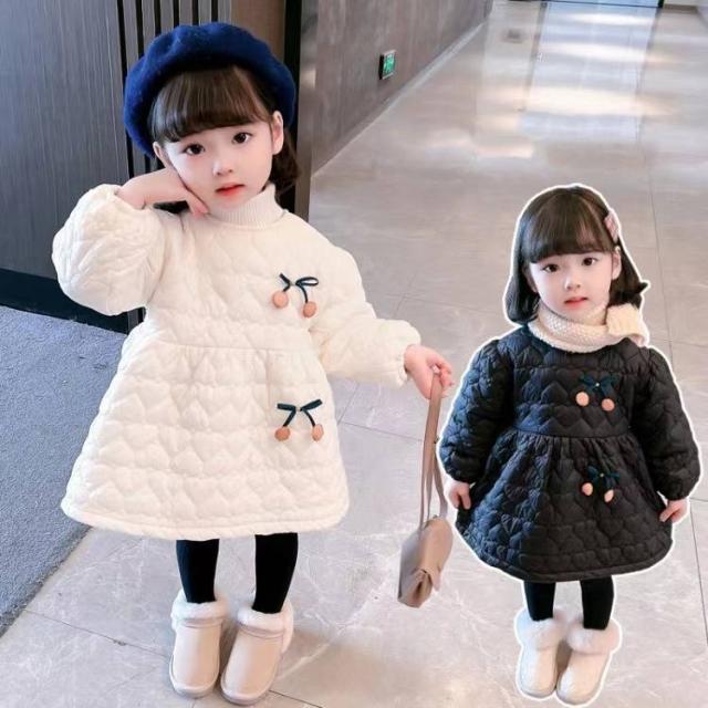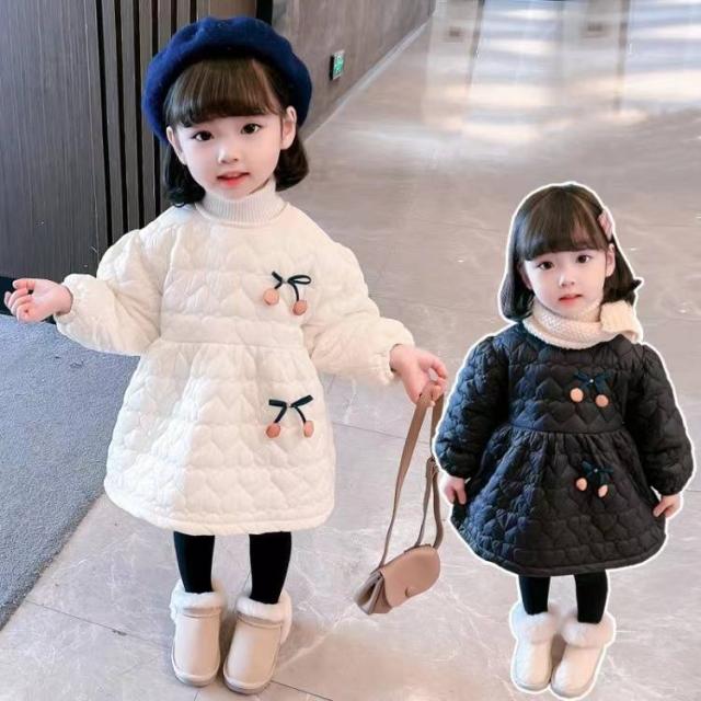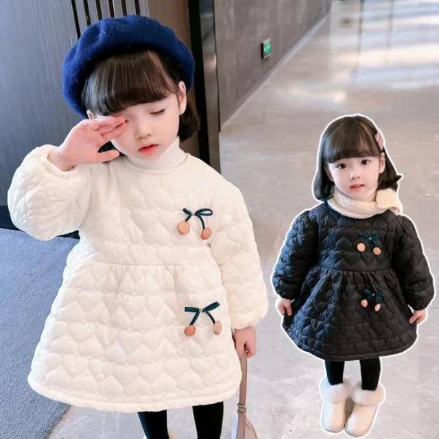 子供 ワンピース 綿服 冬 女の子 ワンピース キッズ服 子供服 こどもドレス 長袖 ルーズ コットン ジッパー付き チェリー かわいい 韓国風 通学 3〜8歳