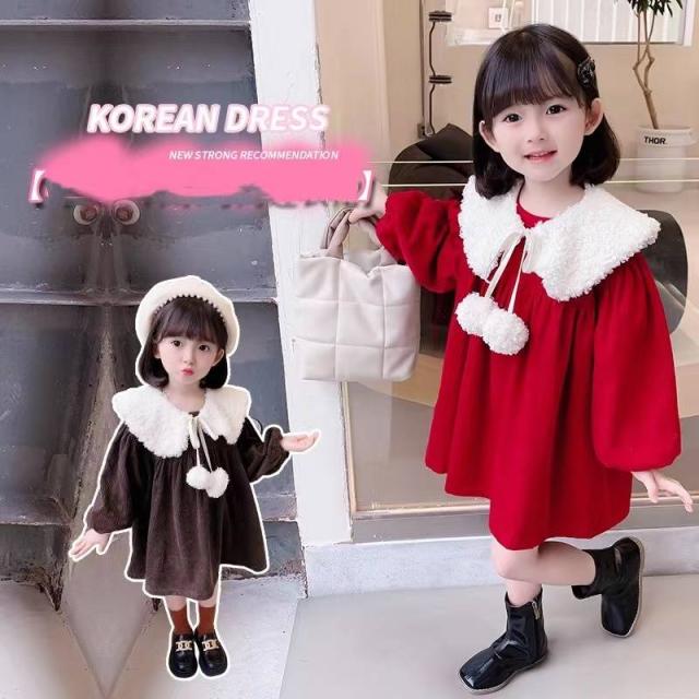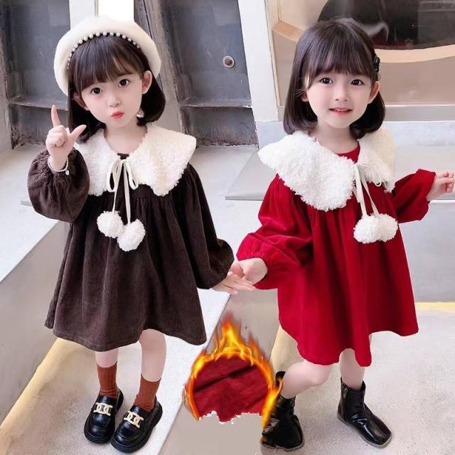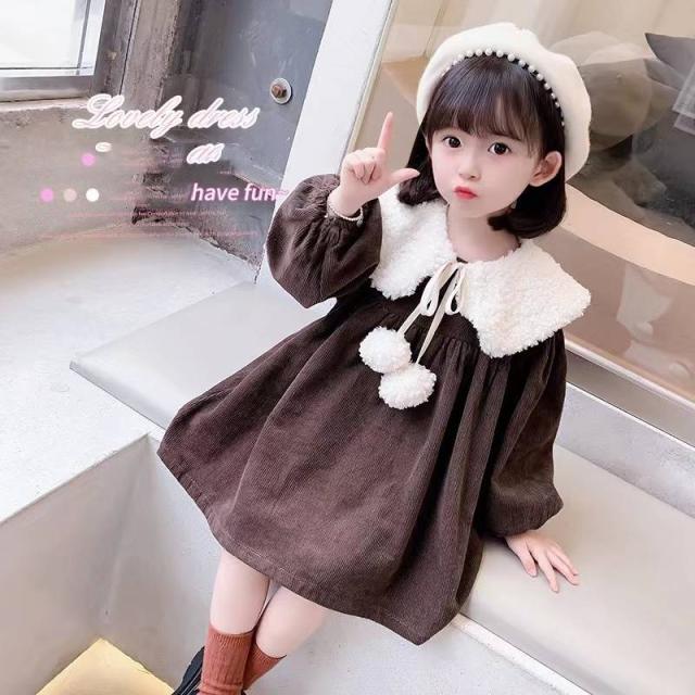 子供 ワンピース 綿服 冬 女の子 ワンピース キッズ服 子供服 こどもドレス 長袖 ルーズ コットン おしゃれ かわいい 韓国風 通学 3〜8歳