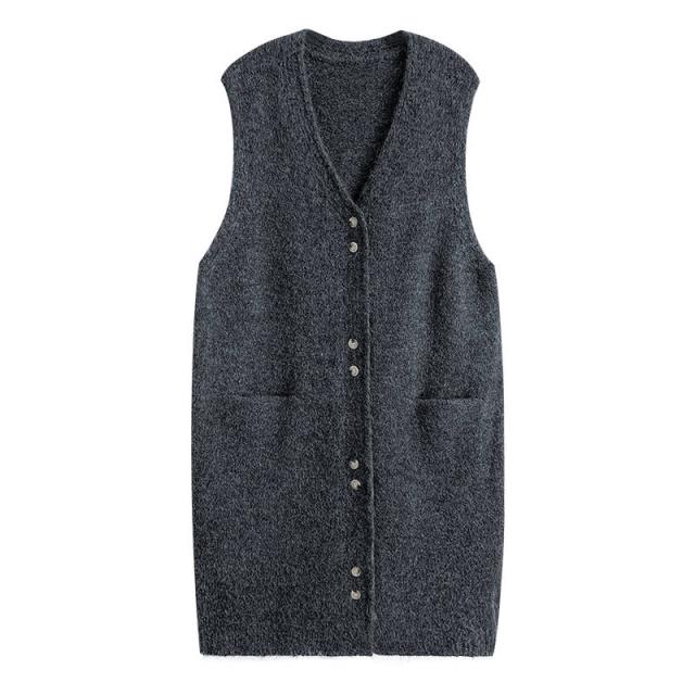 ジャンパースカート レディース ニット サロペット 無地 シンプル ノースリーブ ゆったり ルーズ ロング丈 ボタン付き H型 学院風 ベストワンピース カジュアル Vネック 韓国 ファッション