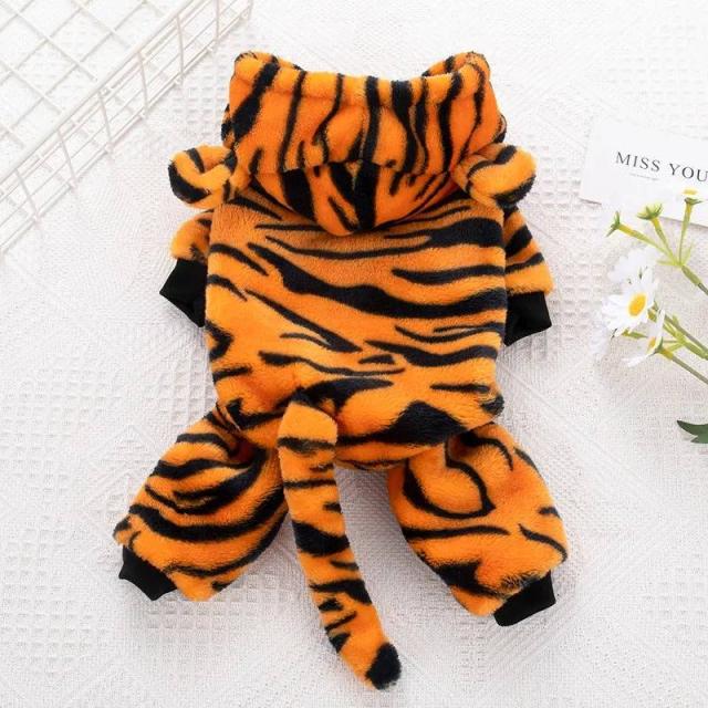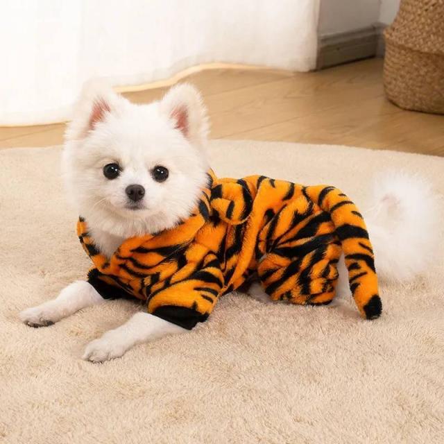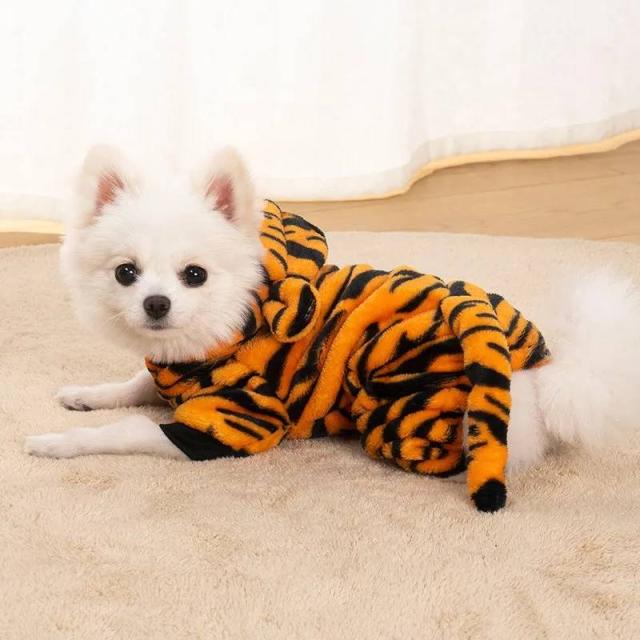 干支 寅年 虎 犬服 つなぎ ドッグウェア カバーオール 虎柄 フード付 ボア あったか 保温 コスプレ 年賀状 抜け毛防止 長袖4脚 部屋着 パジャマ オールインワン ロンパース 冬服 かわいい 小型犬 犬服ペット 柴犬 チワワ パグ