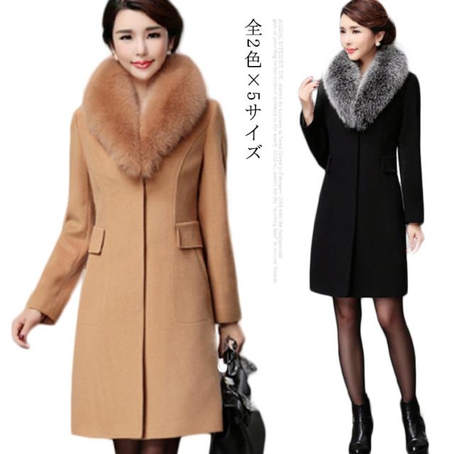 コート レディース ロングコート 秋冬 フェイクファー付き襟 テーラーカラー きれいめ 上質 上品 Aライン おしゃれ アウターウェア 秋服 冬服 上着 女性用