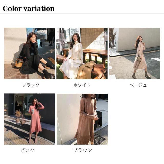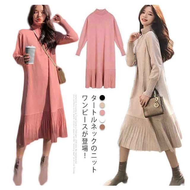 ワンピース レディース ケーブル編み ニットワンピース ニット ロングワンピース タートルネック 長袖 ハイネック 裾 切り替え プリーツ ロング丈 大きいサイズ ゆったり マタニティ