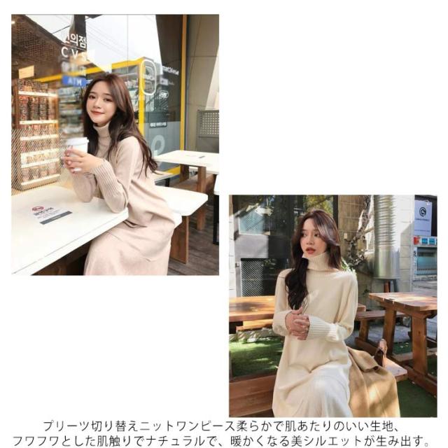 | タートルネックのニットワンピースが登場! 袖部分と首元は細リブのデザインになっていて、上品でエレガントな雰囲気に! プリーツ切り替えニットワンピース柔らかで肌あたりのいい生地、フワフワとした肌触りでナチュラルで、暖かくなる美シルエットが生み出す。 カジュアルなスタイリングも、大人っぽさをプラスしてくれます。 タートルネックので、スッキリとして見えて小顔効果も期待できます! ゆったり着られて妊婦さんにも優しいので、マタニティーウエアやママコーデとしても大活躍! | |