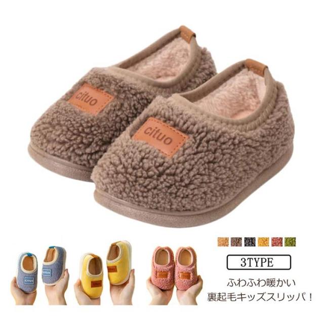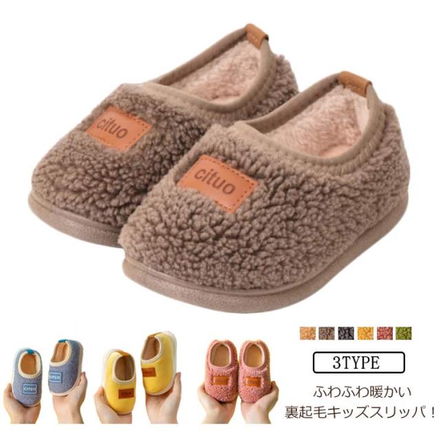 キッズ ルームシューズ 子供用スリッパ モコモコ ふわふわ ボア スリッパ 暖かい 男の子 女の子 裏起毛 子ども用スリッパ ジュニア おしゃれ かわいい 秋冬 防寒 子供靴 キッズ靴 子ども 軽量 保温 シンプル 滑り止め 室内用 洗える