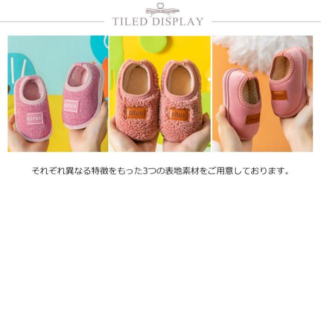 | ふわふわ暖かい裏起毛キッズスリッパ! それぞれ異なる特徴をもった3つの表地素材をご用意しております。 底はTPR!滑りにくい。元気いっぱいなお子様がいるご家庭でも安心! 裏フリースが足を包み込むあったかスリッパ。 履き口ゴム&ストレッチ設計で自分の足そのものの感覚でリラックスでき楽な履き心地。 | |