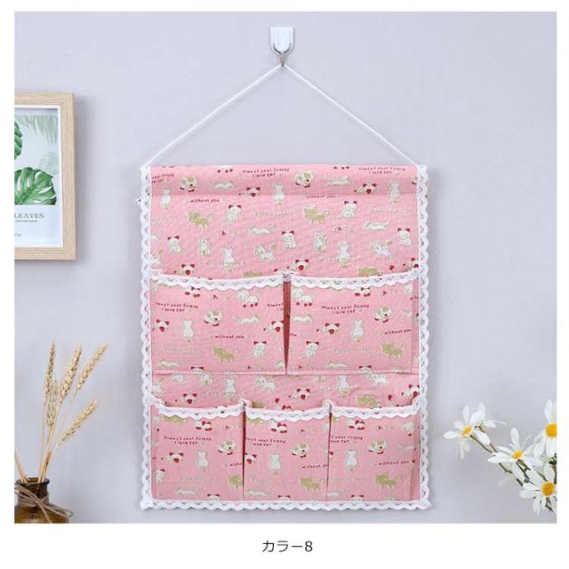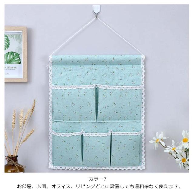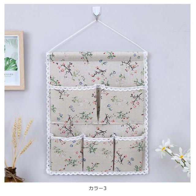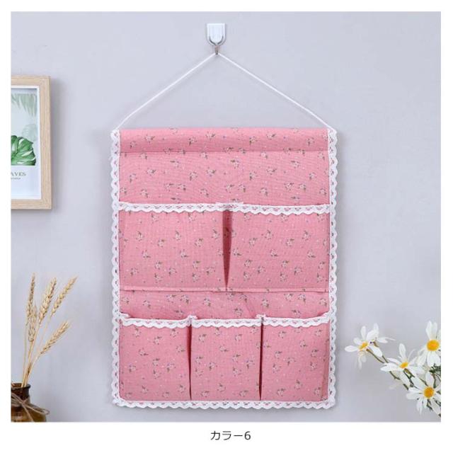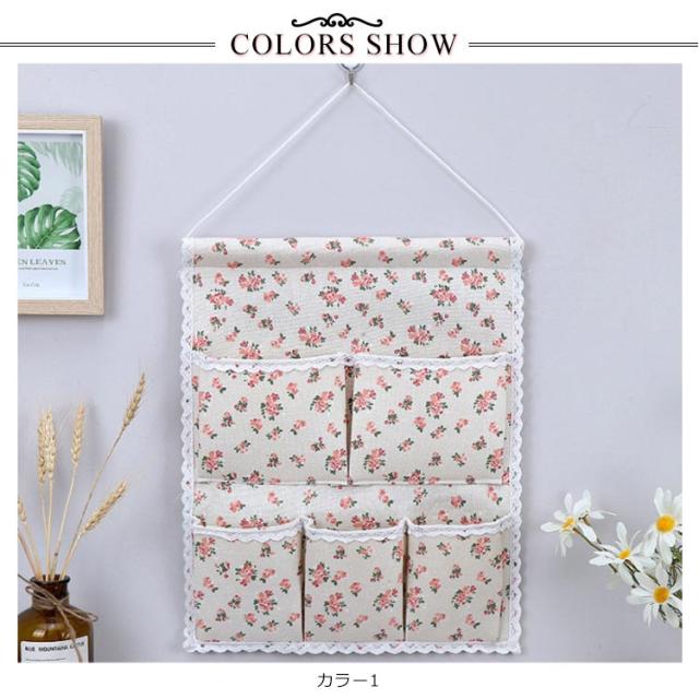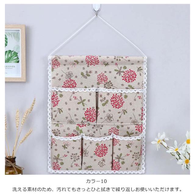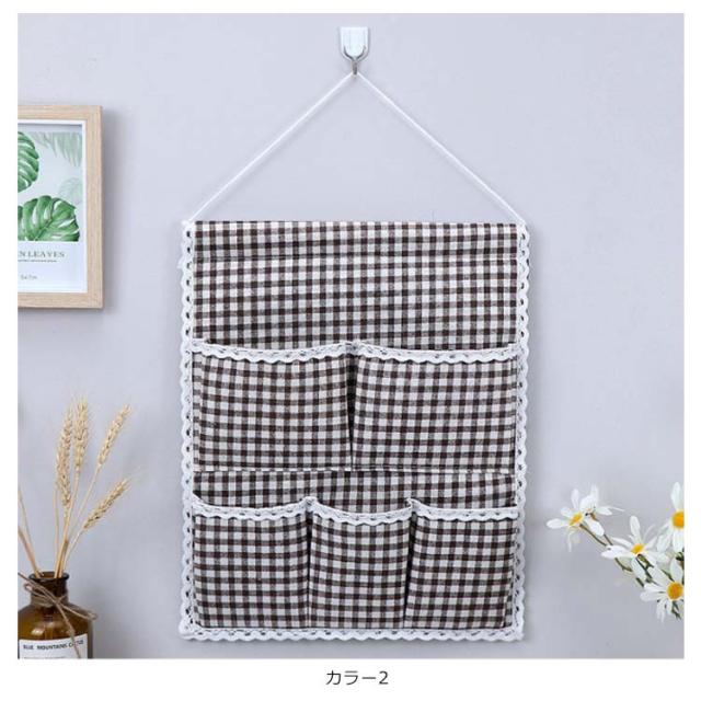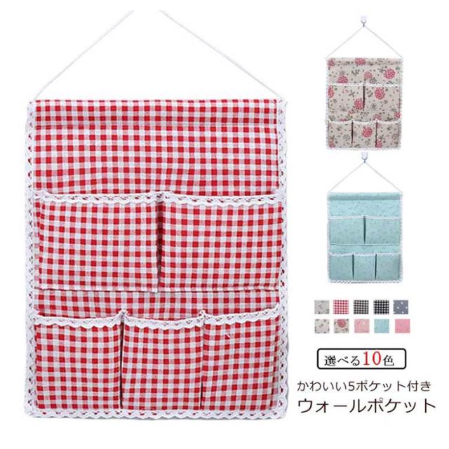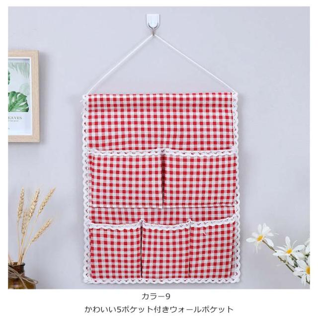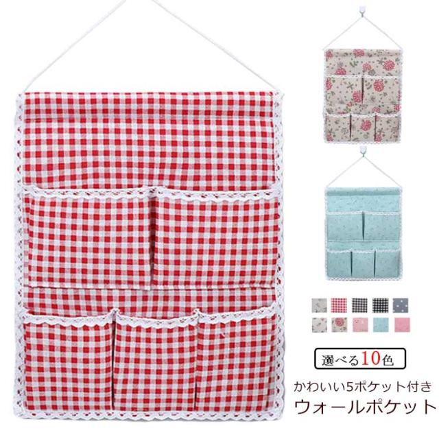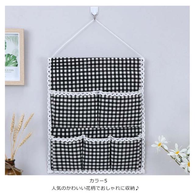 ウォールポケット 花柄 チェック柄 おしゃれ 壁掛け収納 吊り壁バッグ ドア収納袋 5ポケット キッチン収納袋 小物整理 吊り下げ収納ポケット 小物収納 かわいい 可愛い
