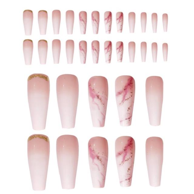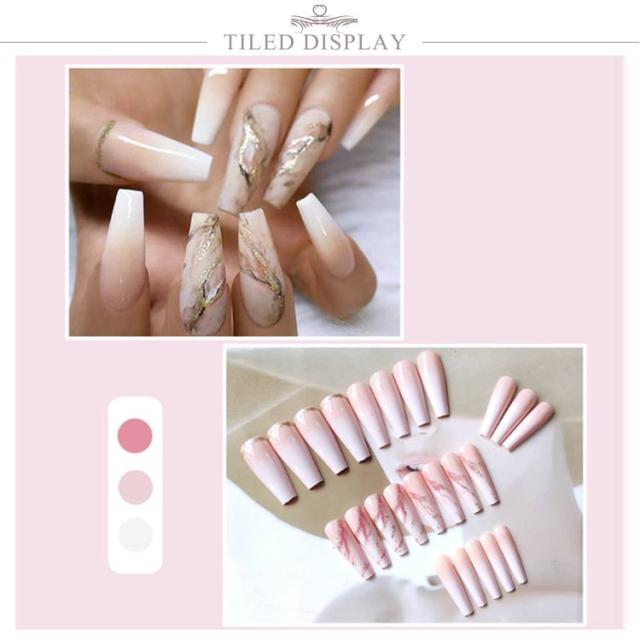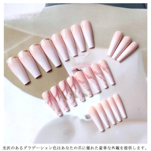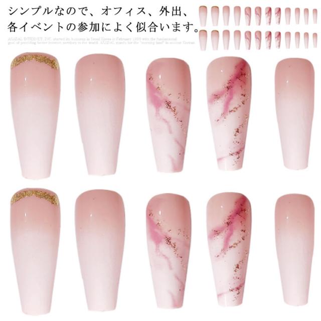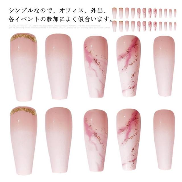 つけ爪 長ネイルチップ 24枚入り シンプル ピンク ジェルネイル 3D マーブル柄 グラデーション色 かわいい ネイル おしゃれ 可愛い ネイルアート ブライダル 付け爪 送料無料