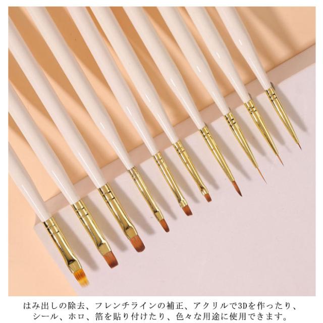 ネイルツール キャップ付き 全10種 ジェルブラシ ジェルネイル マニキュア ネイルアート レジン オーバル フラット ラウンド フレンチ ライナー 多用途 はみ出し修正 おうち時間 筆 送料無料