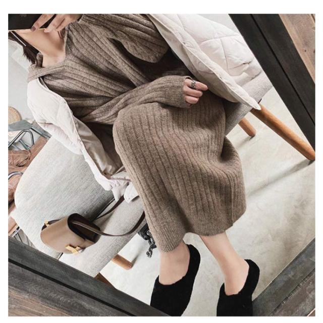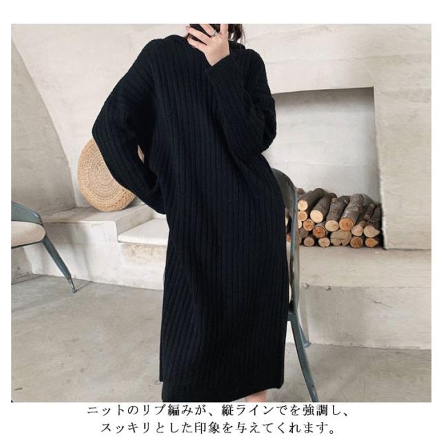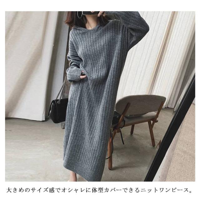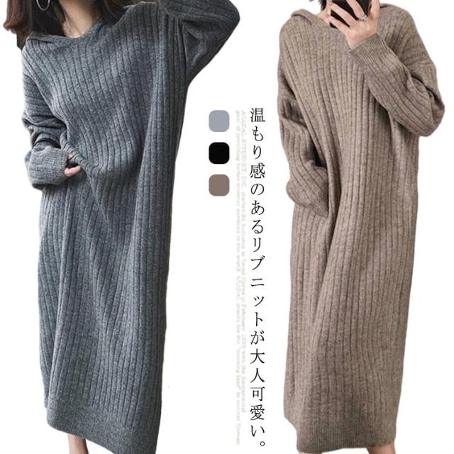 フード付き 長袖 通学 マキシ丈 ロングワンピース ニット ワンピ 暖かい 秋冬 ワンピース 大きいサイズ リブニット ゆったり レディース セーター 体型カバー ドロップショルダー ルームウェア おしゃれ きれいめ カジュアル トレンド 通勤 ニットワンピース