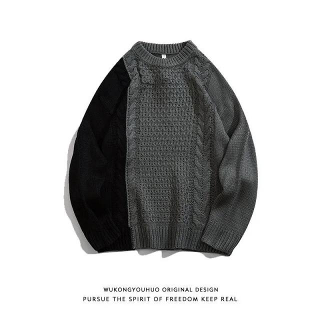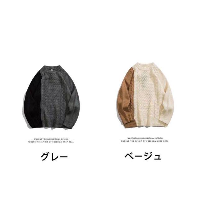 ニット セーター メンズ ケーブル編み トップス ニットセーター ビッグシルエット プルオーバー 秋 冬 ラウンドネック ニット セーター トップス ニット 切り替え M-5XL