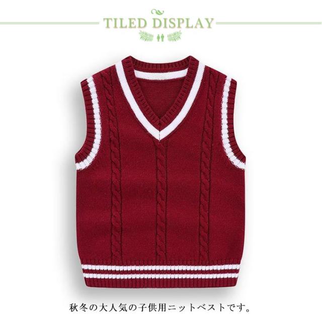 送料無料・全8サイズ! ニットベスト ベスト スクールベスト キッズ 制服 男の子 女の子 Vネック コットン キッズ服 子供服 ジュニア服 綿 ニットアウター ニットトップス 保温 カジュアル 防寒 軽量 フォーマル
