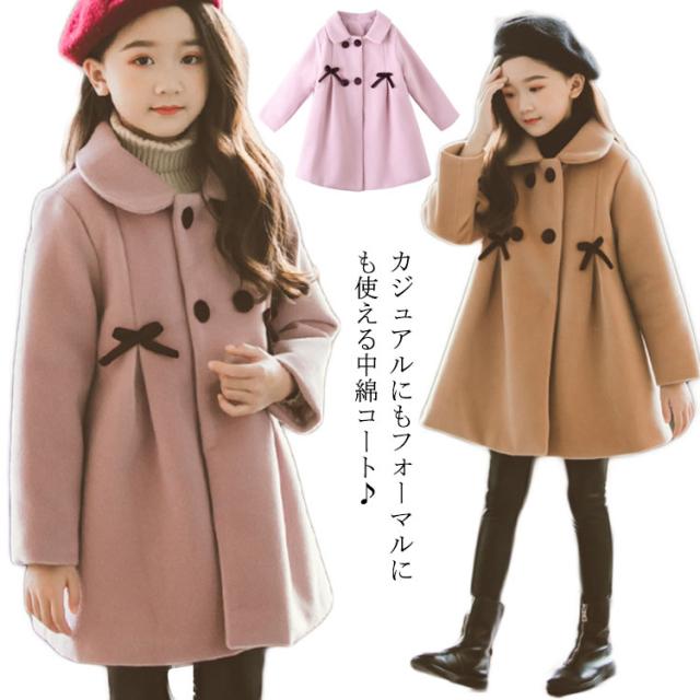 中綿コート キッズ アウター 女の子 ロングコート ラシャコート 子供服 冬服 コート 女児 厚手 防寒 長袖 子ども服 リボン おしゃれ フォーマル 可愛い ジュニア服 通学 卒園式 入学式 パーティ