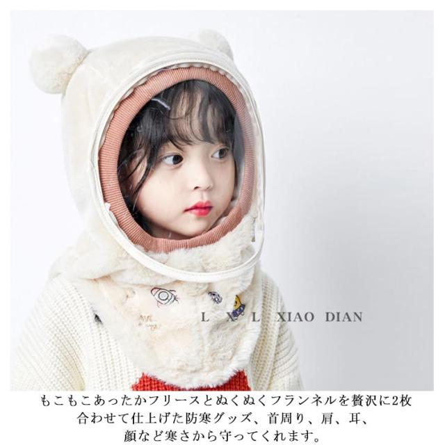 | 顔周りがぽかぽかあったか♪防風効果抜群の透明フェイスカバー付きフードウォーマー。 曇り止め加工フェイスド、周りの景色を楽しめながら、寒い風をしっかりブロック。 Cuteなクマ耳やうさ耳デザイン、かぶるだけで可愛い♪透明ドが取り外しできるから、ハロウィンやクリスマスなど仮装にもぴったり。 もこもこあったかフリースとぬくぬくフランネルを贅沢に2枚合わせて仕上げた防寒グッズ、首周り、肩、耳、顔など寒さから守ってくれます。 寒い冬欠かせないのお出かけや通学、アウトドア時の防寒・防風対策に最適です。 | |