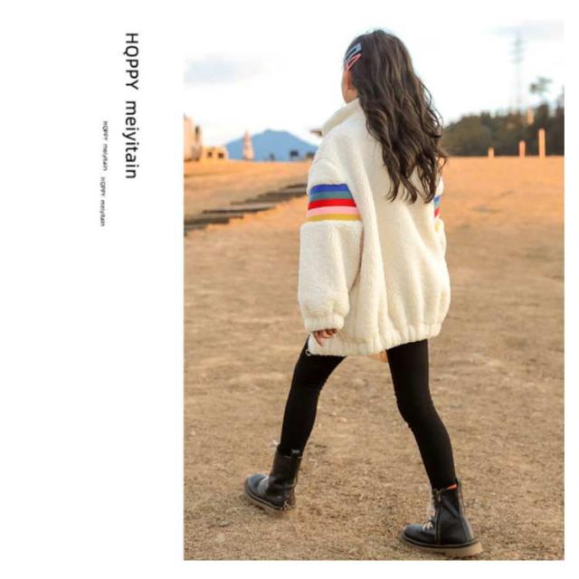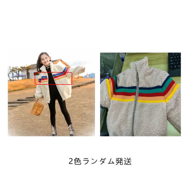 ボアコート キッズ アウター 女の子 中綿 ボアジャケット ボア コート アウター ジャケット 子供コート 子供服 キッズ レインボー 虹 立ち襟 厚手 秋 冬 韓国 ジュニア おしゃれ 秋冬 暖かい 防寒