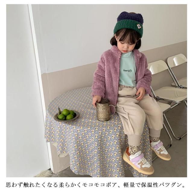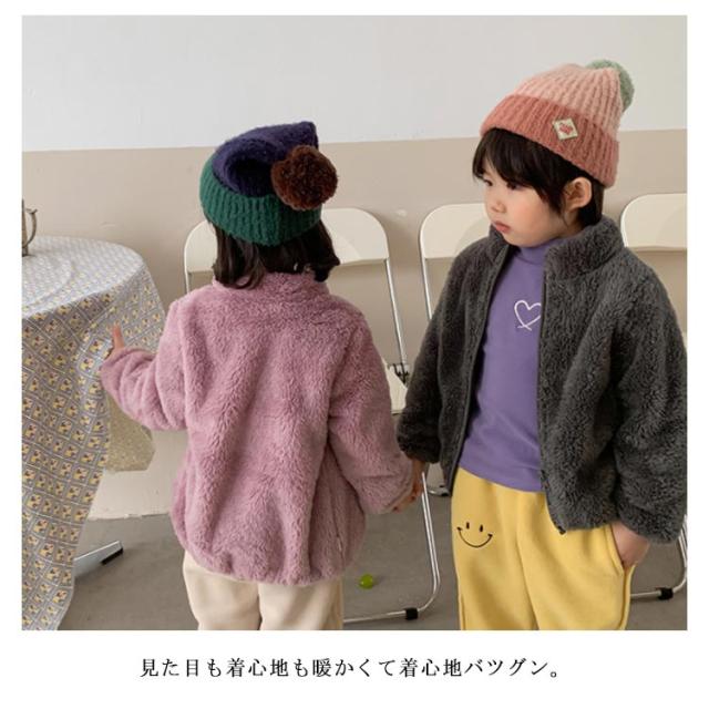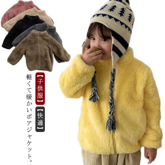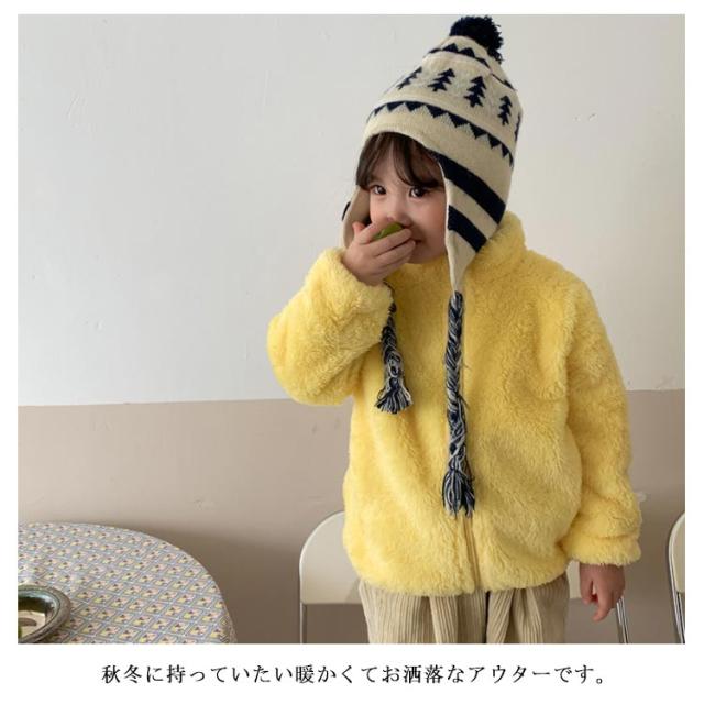 ボア キッズ アウター 上着 ボア ジャケット ボア コート 女の子 ジャンパー ブルゾン アウター ふわふわ 裏起毛 裏ボア 90 こども 男の子 ユニセックス 軽量 暖かい 無地 80 もこもこ 100 子供服