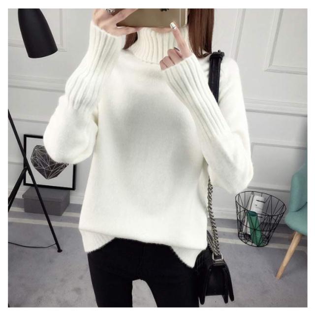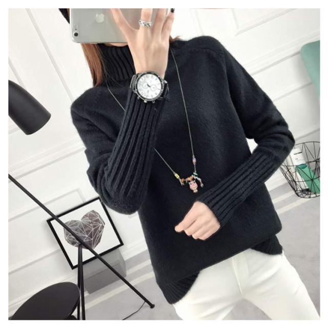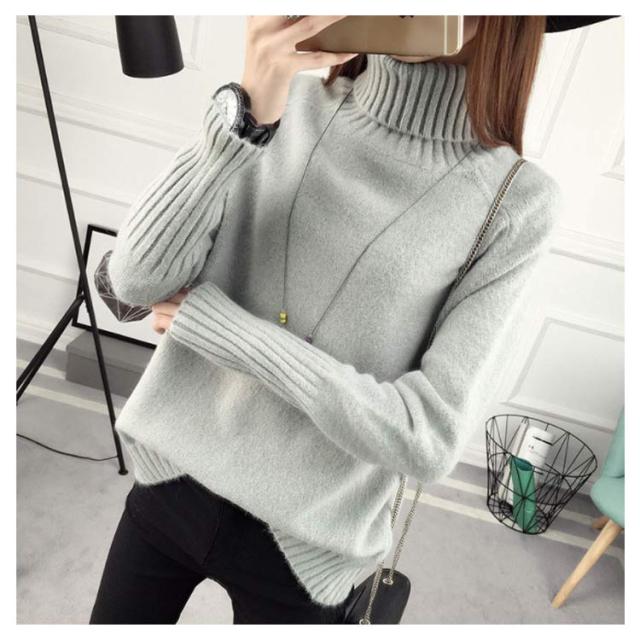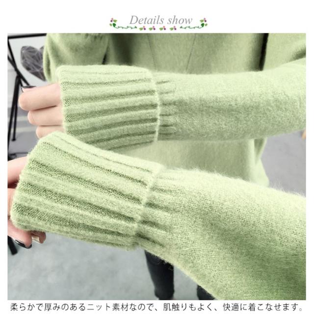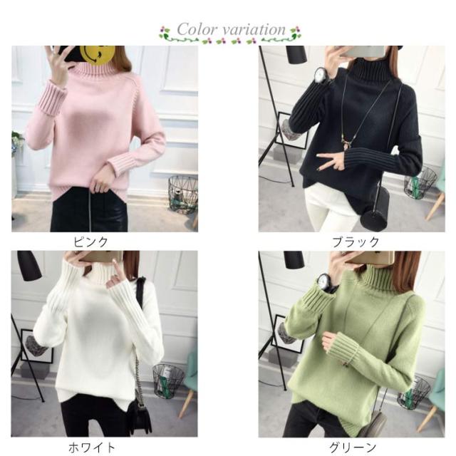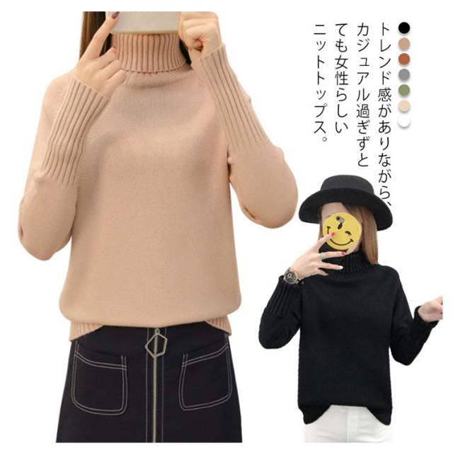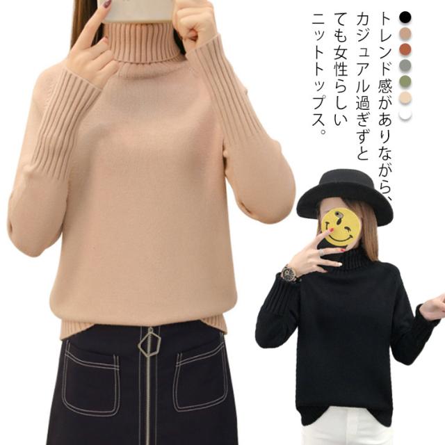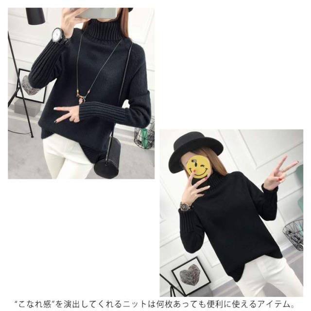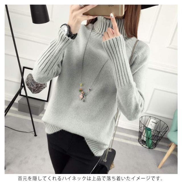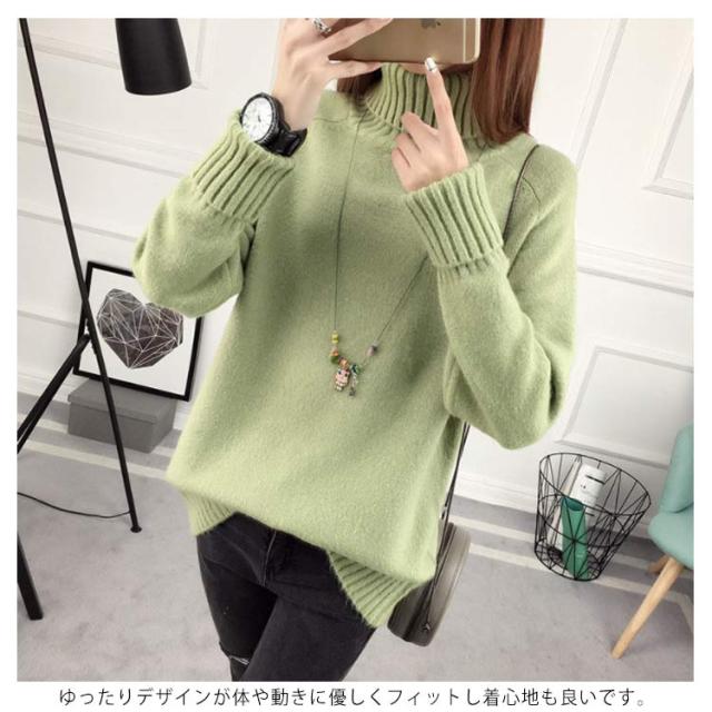 ニットセーター 長袖 ゆるニット トップス セーター ハイネック フェミニン 秋冬 厚手 レディース タートルネック 無地 キレイめ 保温 カジュアル お洒落