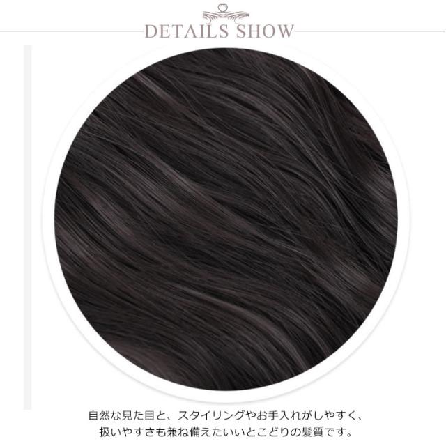| 自分のポニーテールにひっかけてとめるだけ☆ ボリュームたっぷりで小顔魅せ効果抜群です。 ガーリーでかわいいリボン付きのもポイントです。 自然な見た目と、スタイリングやお手入れがしやすく、扱いやすさも兼ね備えたいいとこどりの髪質です。 クリップ付きでよりしっかり固定することが出来、安定感抜群です。 お出かけ、結婚式など華やかな場でもゴージャスな雰囲気で大活躍です☆ | |