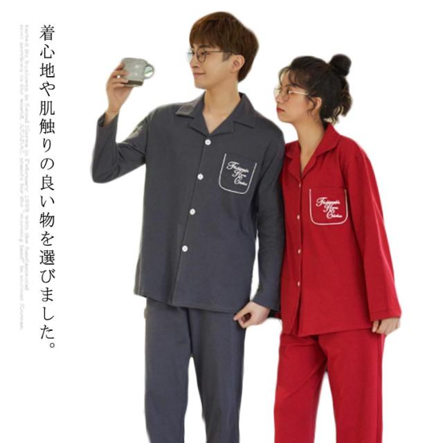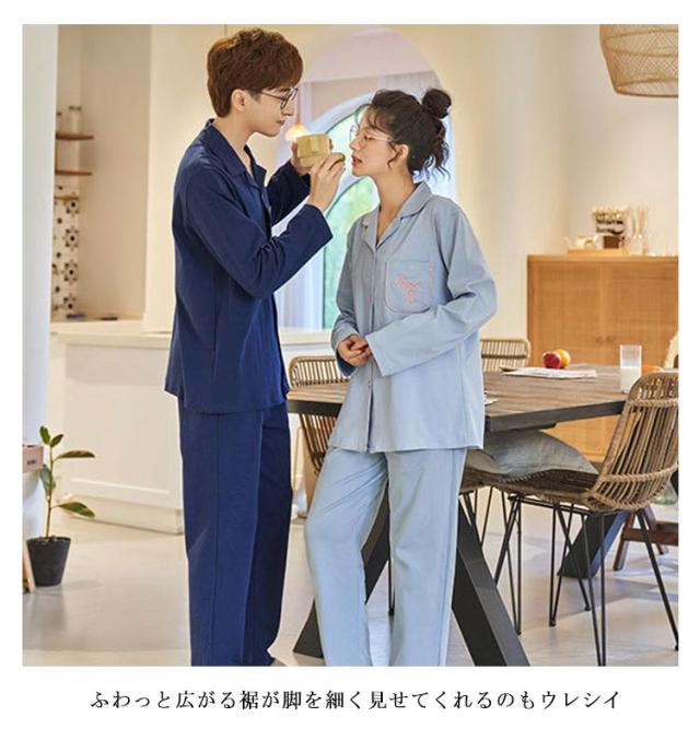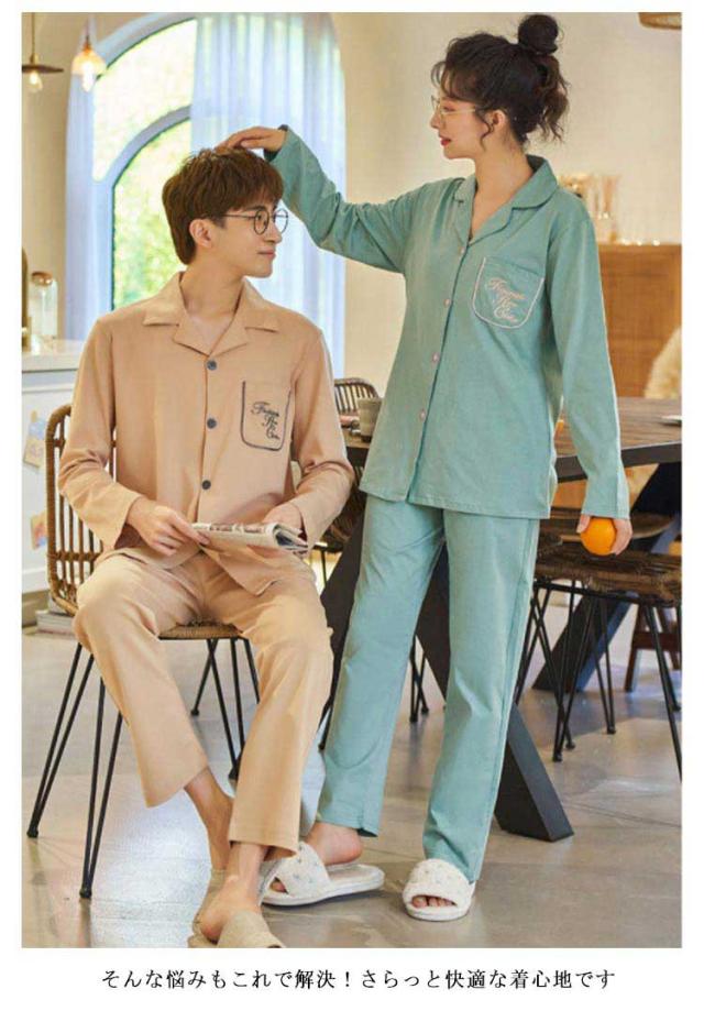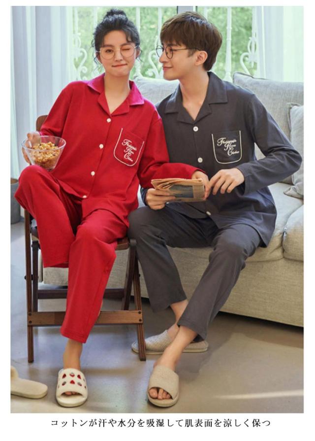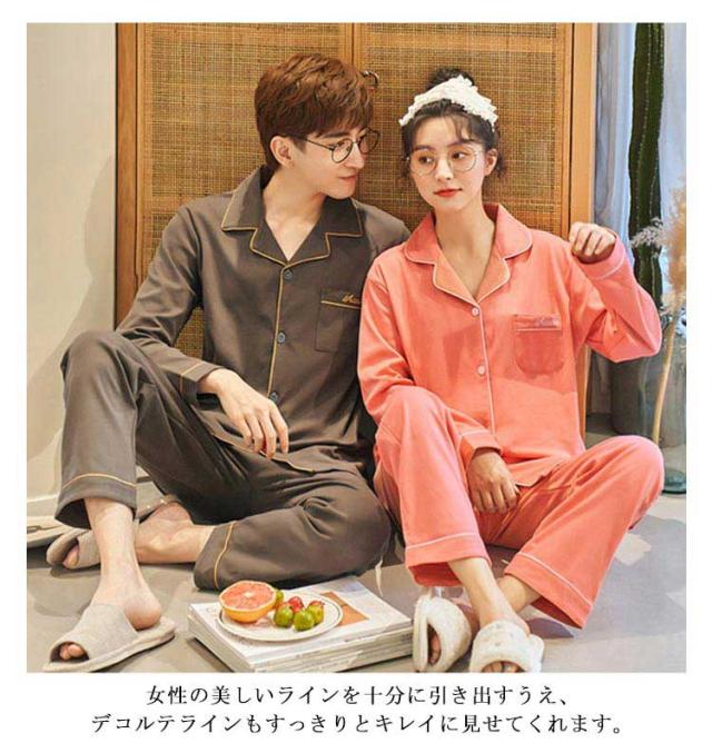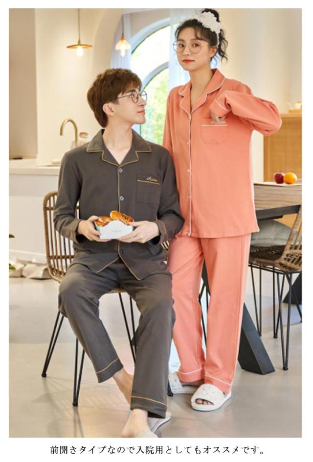 男女ペア レディース ペアルック 上下セットナイトウェア 女性 パジャマ 吸汗 100%綿 ルームウェア 長袖 前開き ギフト 女 カップル ペア セットアップ 大人 綿 速乾 コットン 春 秋 冬 入院 敬老の日 ギフト 母の日 父の日 部屋着