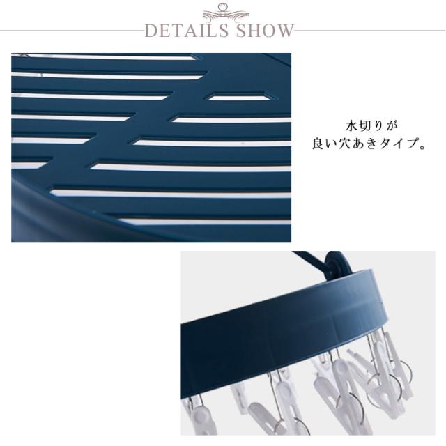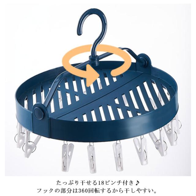 | 靴を干すこともできる多機能ピンチハンガー。 たっぷり干せる18ピンチ付き♪ フックの部分は360回転するから干しやすい。 折りたたんで、コンパクトに収納可能。 丈夫でサビにくいプラスチック製で濡れても心配なし。 インナーや下着、靴下、シューズの干しに最適♪ 部屋干し、室内干し、洗濯干しに。 | |