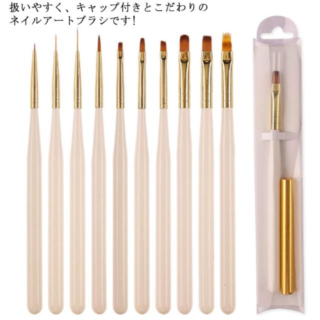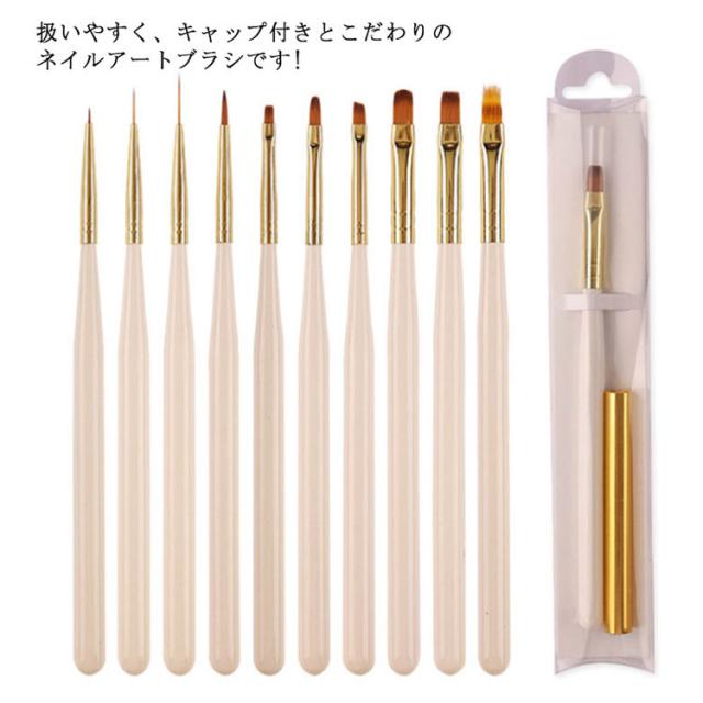ラウンド ジェルネイル マニキュア 多用途 ネイルツール ジェルブラシ ネイルアート レジン 筆 フラット 全10種 フレンチ ライナー オーバル はみ出し修正 おうち時間 キャップ付き