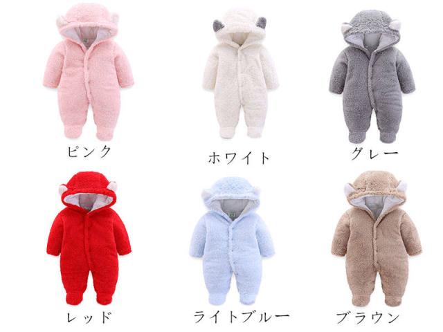 赤ちゃん ジャンプスーツ カバーオール ロンパース ベビー ベビー服 男の子 女の子 新生児 ベビーウェア 足つき 防寒着 厚手 もこもこ 秋冬 プレゼント 出産祝い 百日祝い 着ぐるみ 59 66 73 80