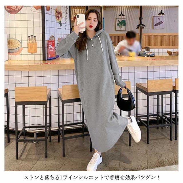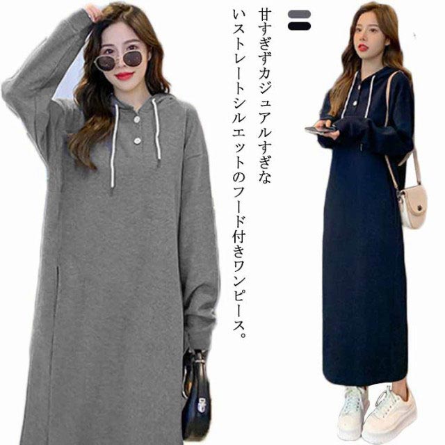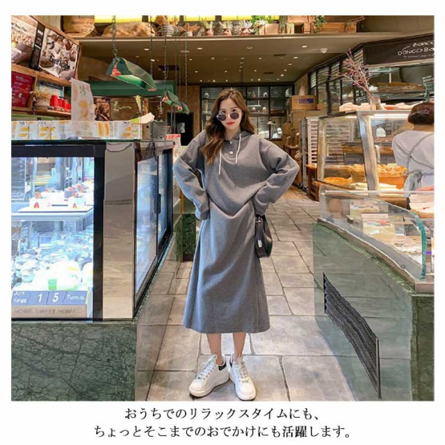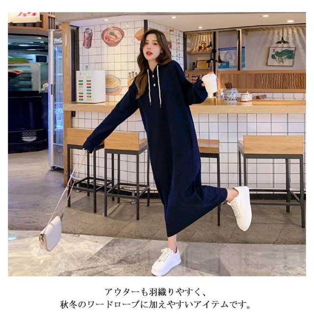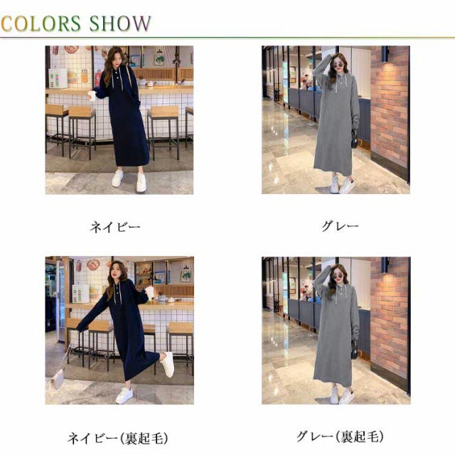 パーカーワンピース ロング ワンピース 裏起毛 あったか フード付き スウェット ワンピース レディース ロングワンピース トレーナー チュニック 長袖 パーカー 暖かい ルームウェア 大きいサイズ ゆったり 体型カバー 防寒 秋冬