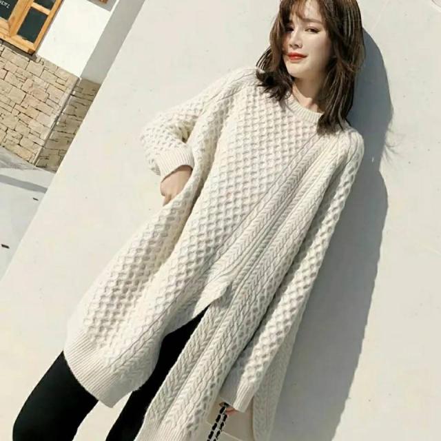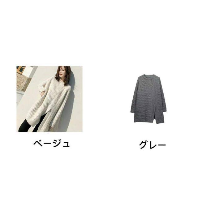スリット入りセーター レディース 長袖 フレアセーター ロングセーター 丸襟 切り替え ゆったり ニットセーター 秋冬 無地 カジュアルセーター シンプル カジュアル おしゃフォーマルセーター 普段着 フェミニン 送料無料