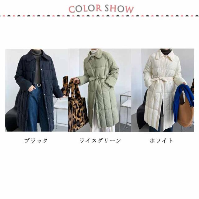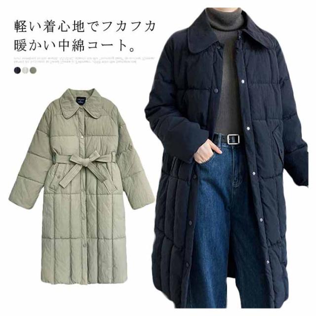 中綿コート レディース コート 防寒ジャケット アウター 中綿 キルティングコート 長袖 膝丈 秋冬物 体型カバー ベルト飾り 折り襟 学生 大人 オフィス 通勤 温かい カジュアル エレガント