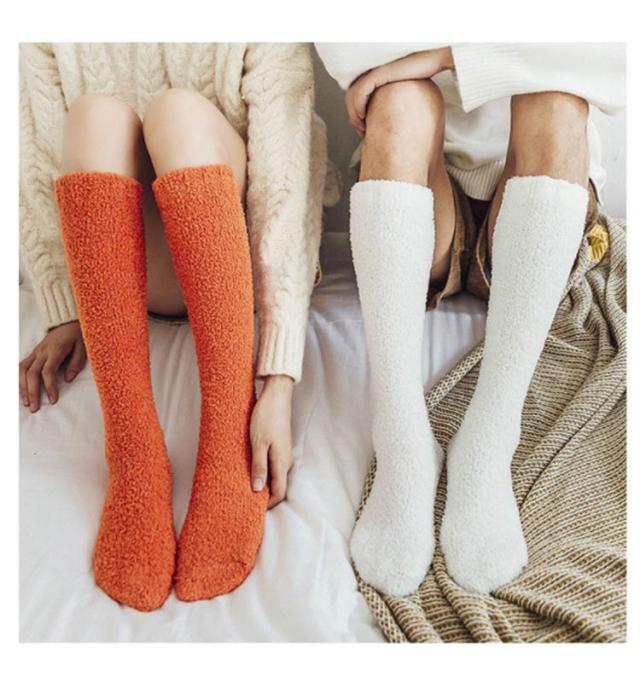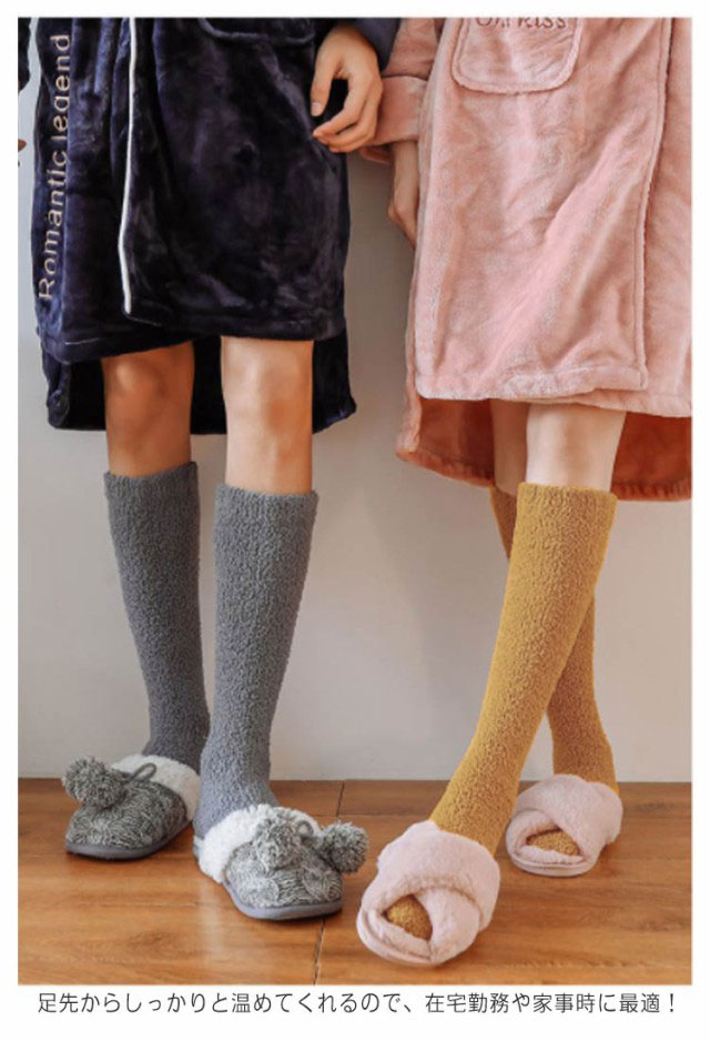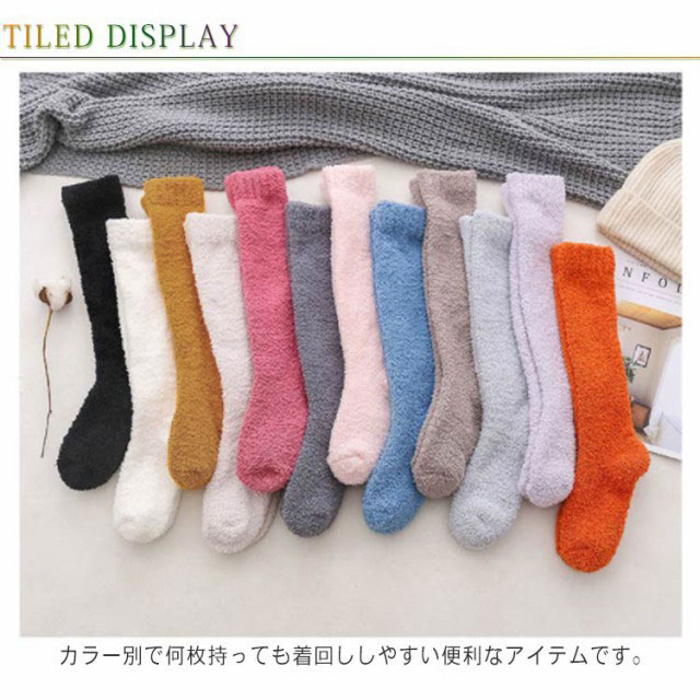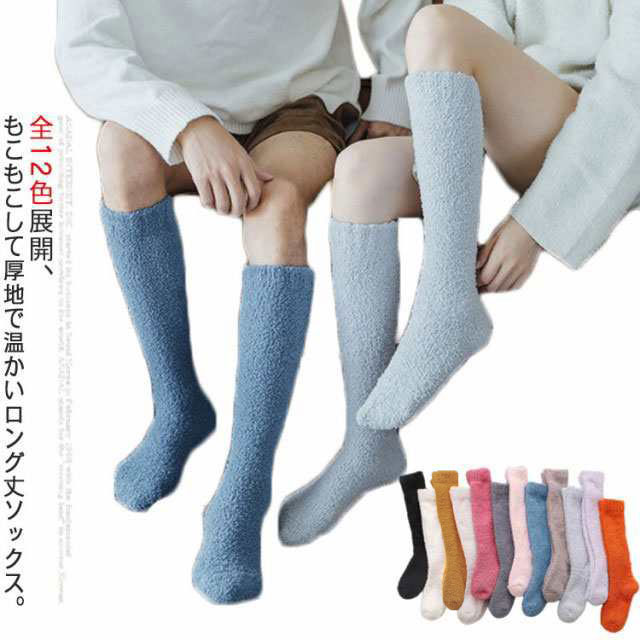 【送料無料】全12色 モコモコ ソックス ロング丈 レディース メンズ ハイソックス あったか 靴下 暖かい 厚手 ルームソックス 足首ウォーマー 冷え取り 冷えとり 無地 防寒対策 室内履き アウトドア キャンプ クリスマス 誕生日 プレゼント