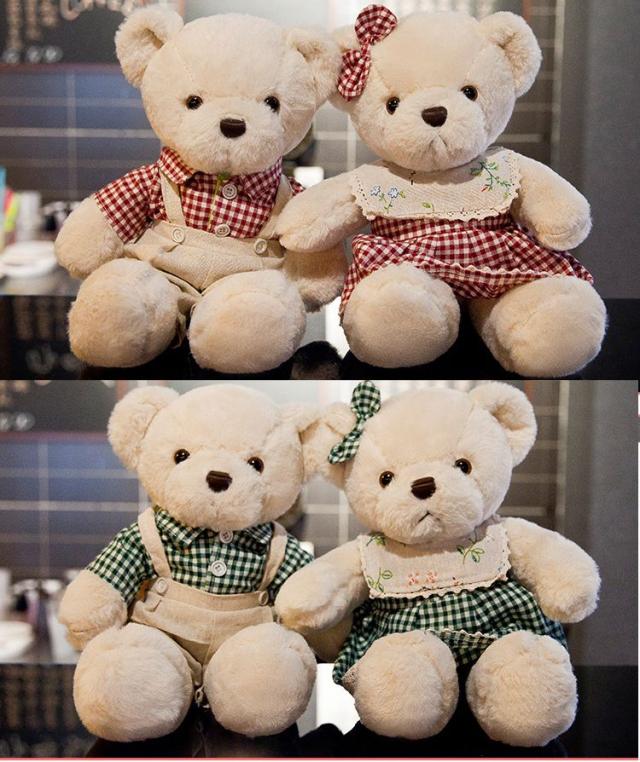 チェックのお洋服を着た可愛い男の子と女の子のクマ