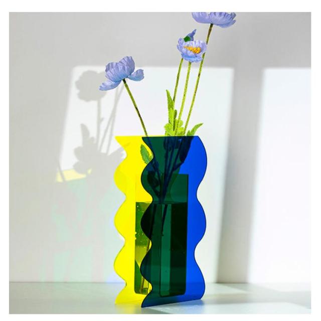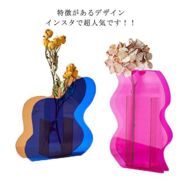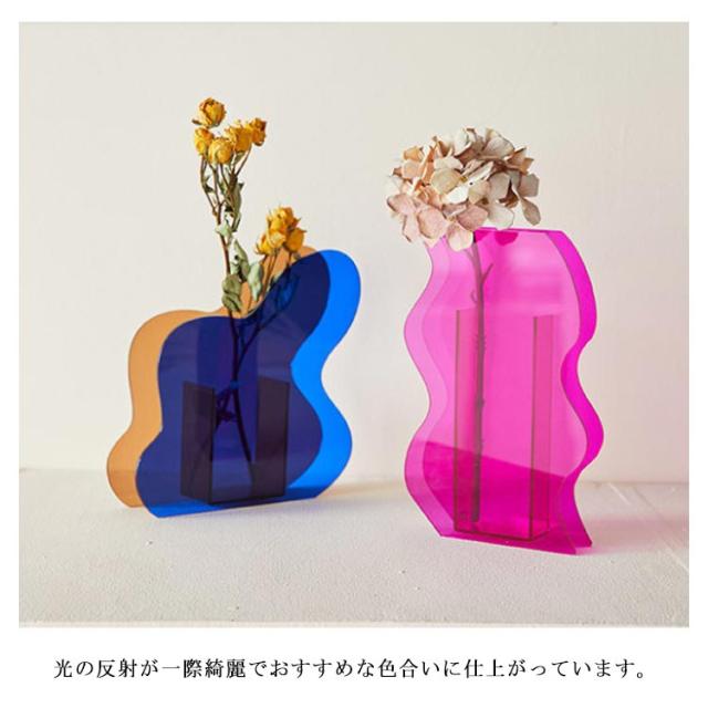 【インスタで超人気】 花瓶 北欧 ガラス 大きい 枝物 透明 波型 フラワーベース クリア アクリル ガラスベース おしゃれ 洋 人気