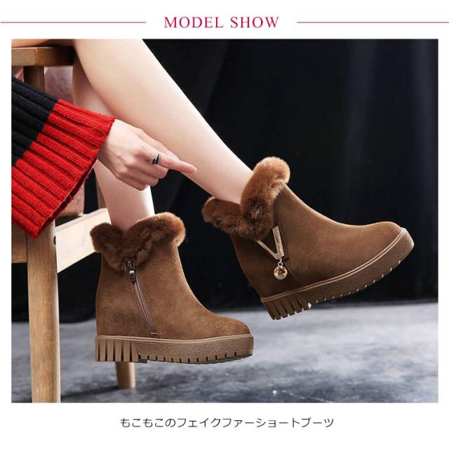 ブーツ レディース 裏起毛 ムートンブーツ 厚底ブーツ レデ防寒 シークレットブーツ フェイクファー ショートブーツ 婦人靴 滑らない あったか 暖かい もこもこ あったか 暖かい 軽量 美脚