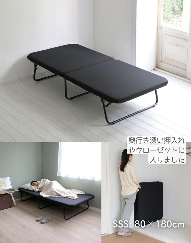 - 小さめの折り畳みベッドを探してたら、ちょうど良いものをみつけて、注文しました。自分の体型、部屋の状況にあってて、届いたその夜から使いはじめました。組み立てスミで、開いて足を立てるだけでいいので、シニアの私にも大変便利です。??