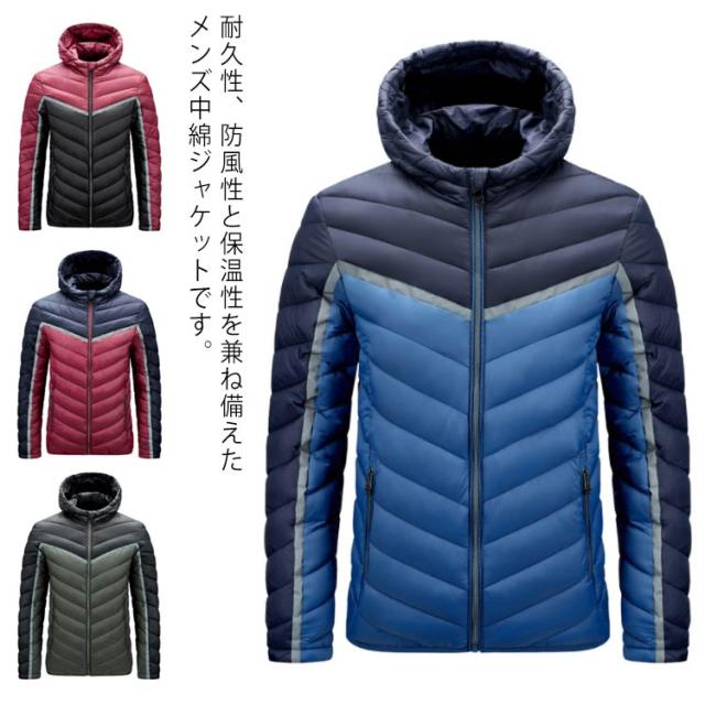 中綿ジャケット 冬服 メンズ 保温 ブルゾン 防風 防寒 配色 暖かい アウター ジャケット ジャンパー ストリート 大きいサイズ カジュアル アウトドア 普段着