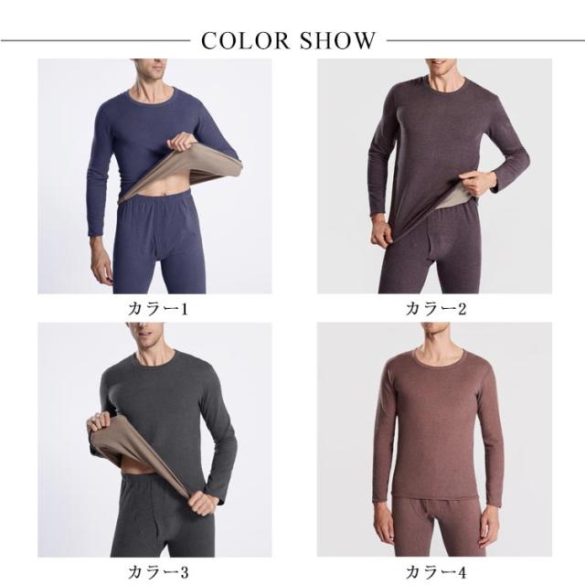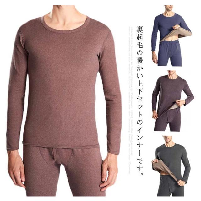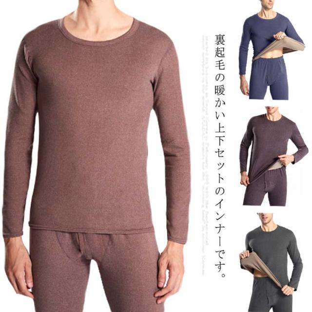 送料無料 肌着 下着 裏起毛インナー メンズ インナーセット 裏ボア 上下セット あったかインナー 裏起毛 インナーシャツ クルーネック 無地 長袖 肌着 ロングタイツ 保温 暖かい パンツ 防寒インナー ストレッチ