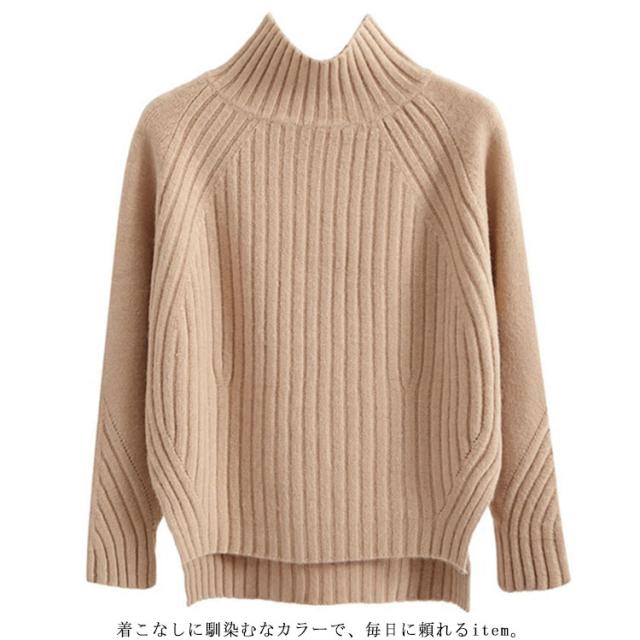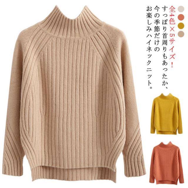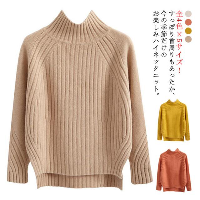 タートルニット ハイネック ニットセーター ボトルネックニット ニット セーター レディース プルオーバー トップス ハイネック 厚手 無地 大きサイズ 秋冬 スリット