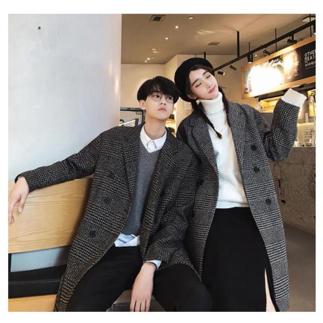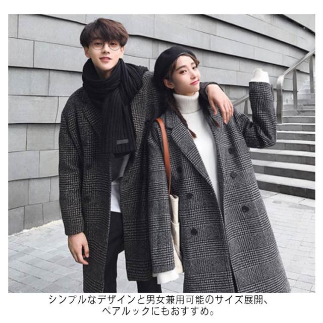 チェスターコート グレンチェックコート メンズ コート 千鳥格子 チェック柄 テーラード 男女兼用 ペアルック ロング丈 ストリート チェスターコート 韓国服 薄手 中綿 厚手 防寒 暖かい グレー ブラウン おうちコーデ おしゃれ 韓国ファッション