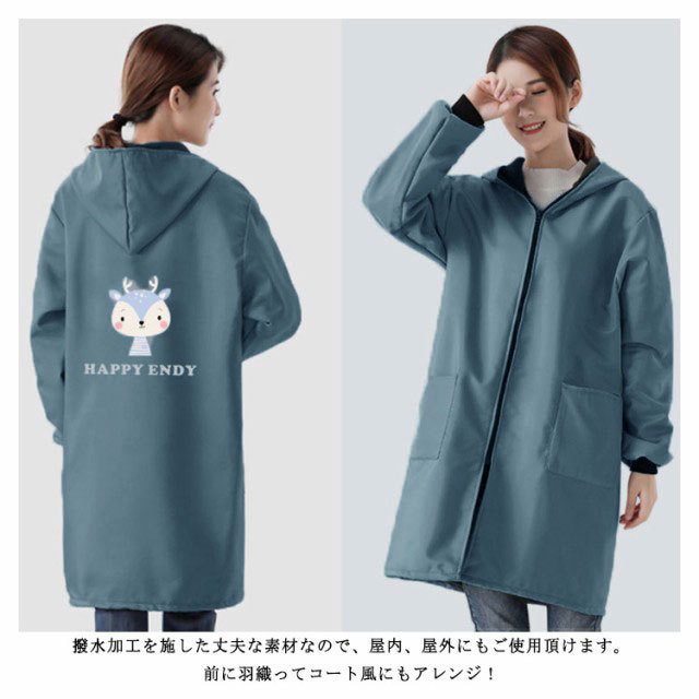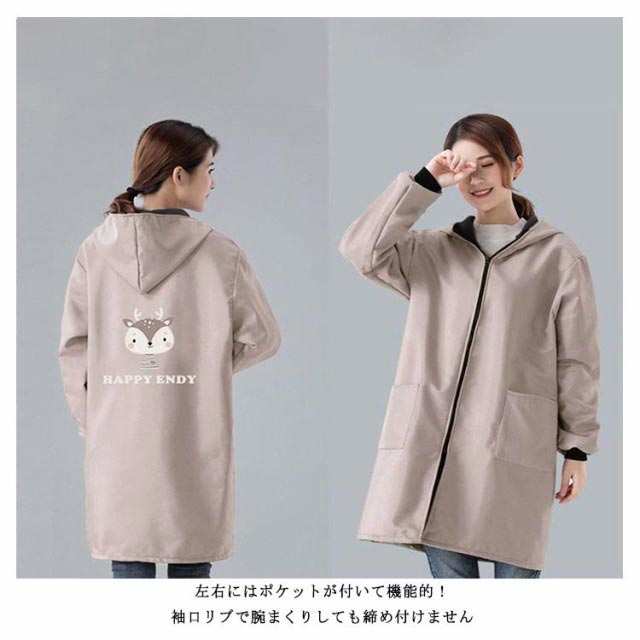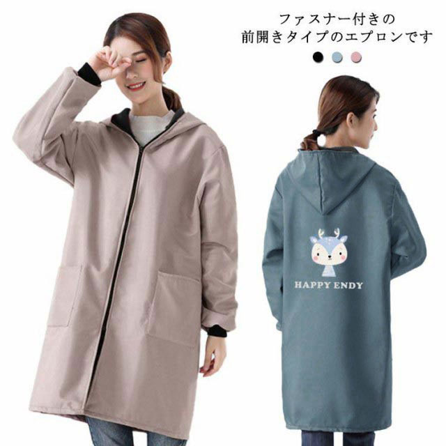 割烹着 エプロン 裏起毛 秋冬 防水 前開き 袖付き 保育士 ファスナー フード付き あったか かっぽう着 ロング おしゃれ かわいい スモック かっぽうぎ ポケット付き 袖リブ 対策 送料無料