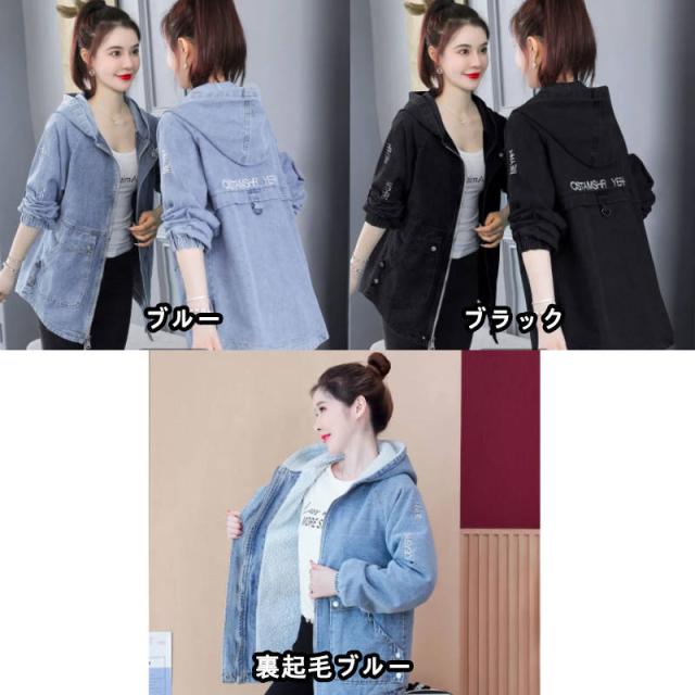 デニムジャケット レディース ロングジャケット デニムロングジャケット 秋冬 大きサイズ ゆったり フード付きジャケット デニム 長袖 送料無料 シンプル 無地 カジュアル おしゃれ 普段着 デート