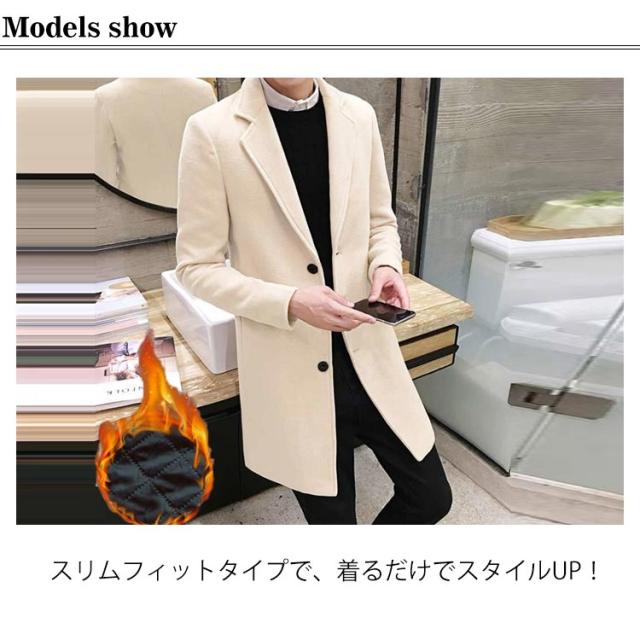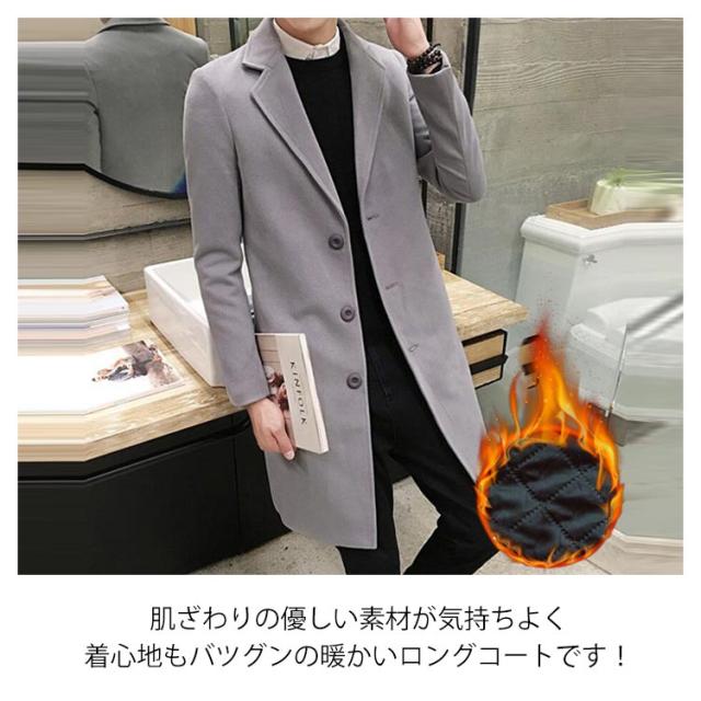 | 厚手のインナーやスーツの上からでも羽織れる最強着回しコート。 スリムフィットタイプで、着るだけでスタイルUP! タイトなラインのシルエットを美しく保つデザイン。 肌ざわりの優しい素材が気持ちよく、着心地もバツグンの暖かいロングコートです! 普段着としてはもちろん、ビジネスコートとしてもオススメ! | |