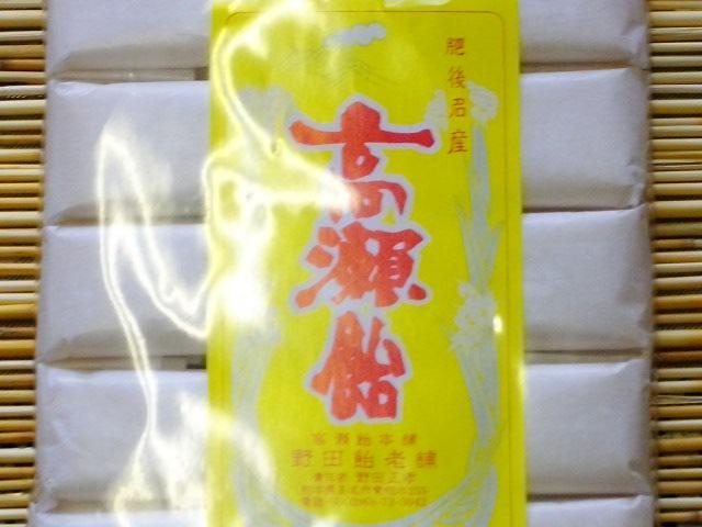 高瀬飴の歴史は古く、室町時代に中国との交易が盛んに行われた当時の中国の商人によって製法が伝えられたと言われています。また、加藤清正が文禄の役(1592年)の体験に基づき、長期の保存食料として考案したともいいます。江戸時代、玉名市中心部を流れる菊池川は、水運の大動脈となり、高瀬には菊池川流域の各地から米が集まり、藩のお蔵も建てられ、高瀬の町は非常に繁栄しました。鎖国により砂糖が手に入りにくくなると、当地の良質のもち米を原料とした飴づくりが奨励されました。高瀬飴は食べると乳の出が良くなると言われ、お産見舞いとしてよく利用されました。甘い物がない時代、妊産婦には貴重な糖分補給として喜ばれたそうです。重箱を持って買いに来る人もいたそうです。また、30〜40年前からは千歳飴の代わりとしてもよく利用されました。しかし、様々な甘いお菓子がふんだんに出回るようになり、昭和初期には約20軒程あった製造業者も今は3軒になってしまっています。