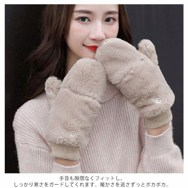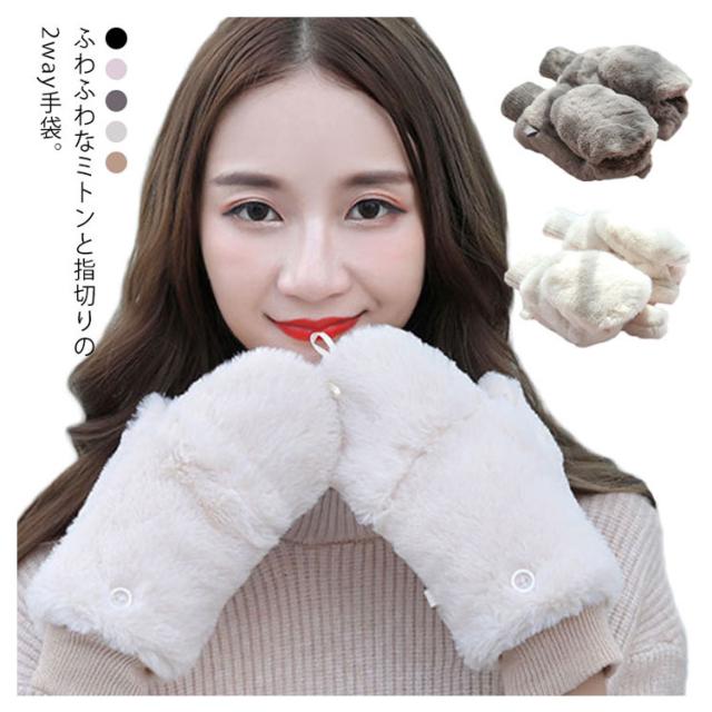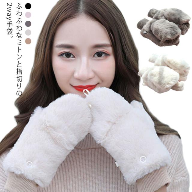 手袋 レディース もこもこ ミトン手袋 ミトン ファー ボア ボア裏起毛 フリース フェイクファー 指切り ボタン 手袋 2way 送料無料 もこもこ フワモコ 暖かい 防寒 冬 てぶくろ 手袋 おしゃれ 小物 秋 冬 レディース手袋