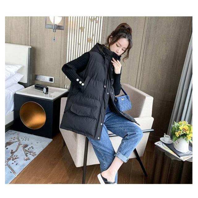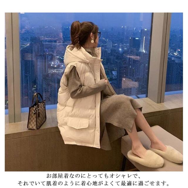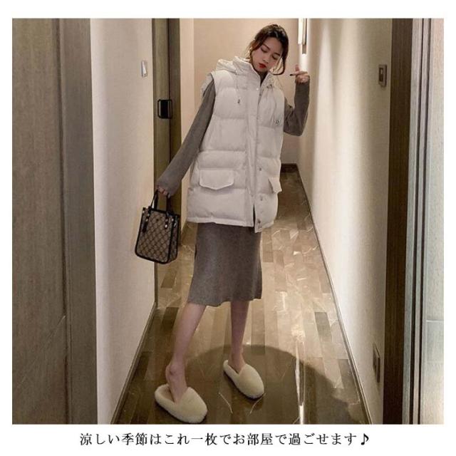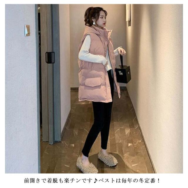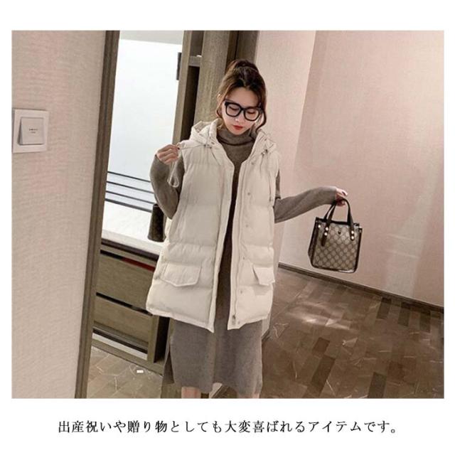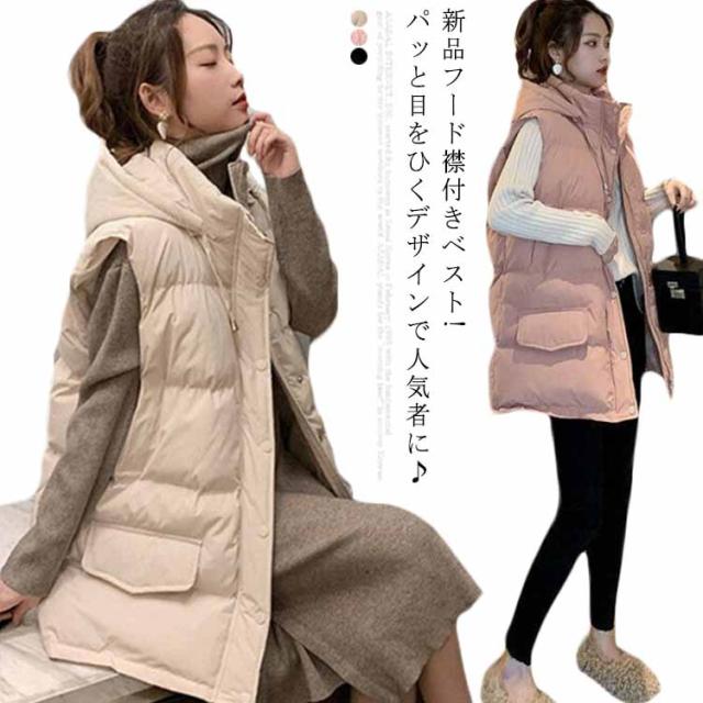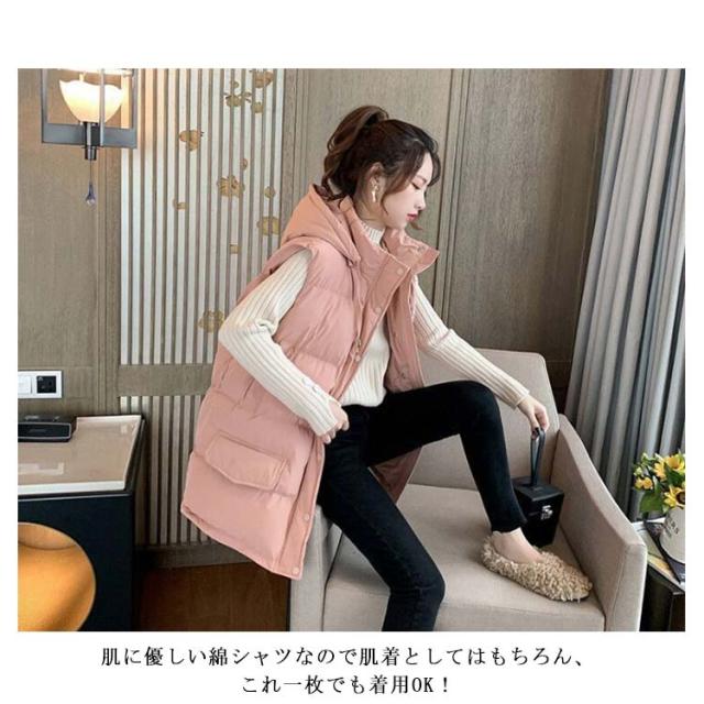 新品フード襟付きベスト! 中綿ベスト ベスト ジレ ロング丈 レディース 秋冬 ロングベスト ジャケット コート レディース 暖かい アウター 中綿ジャケット 中綿コート 羽織り 中綿 トップス 保温 防寒 軽量 大きいサイズ シンプル カジュアル お洒落
