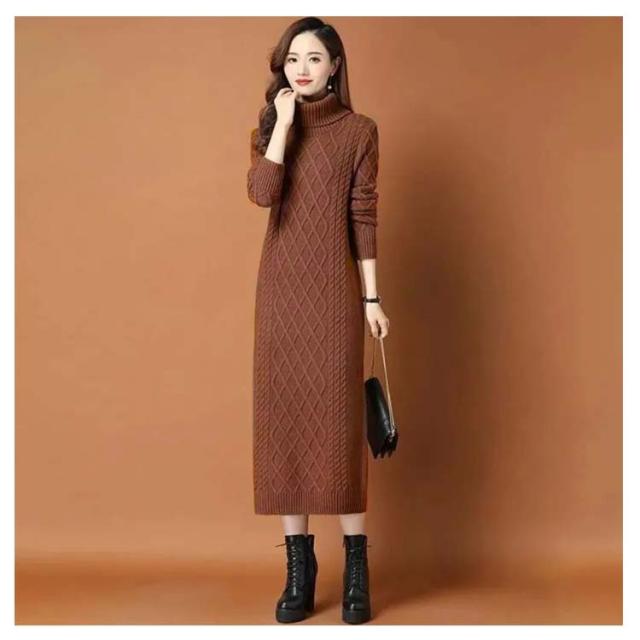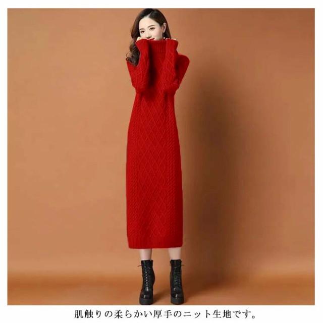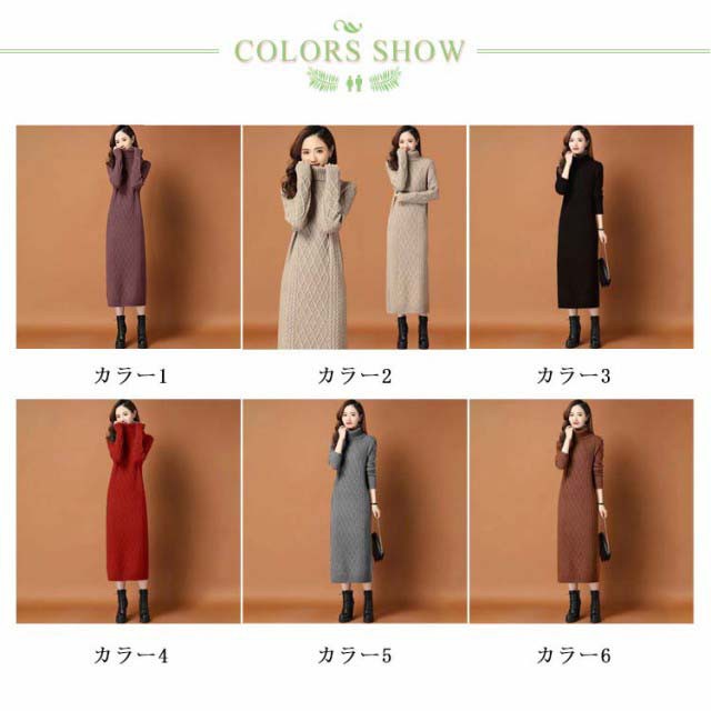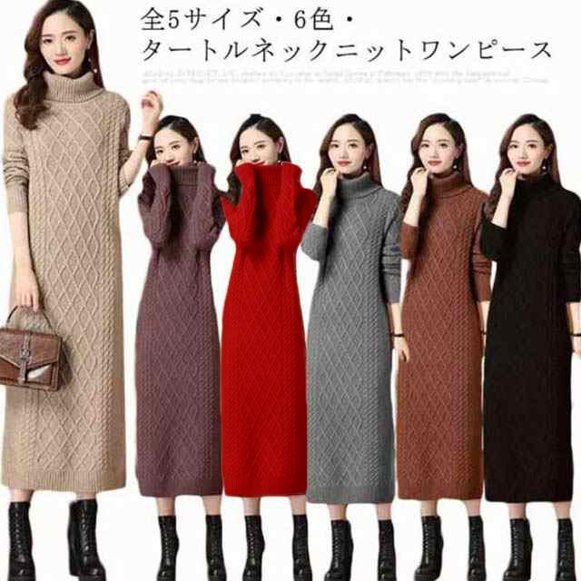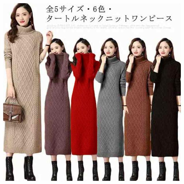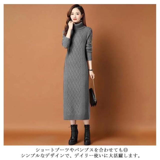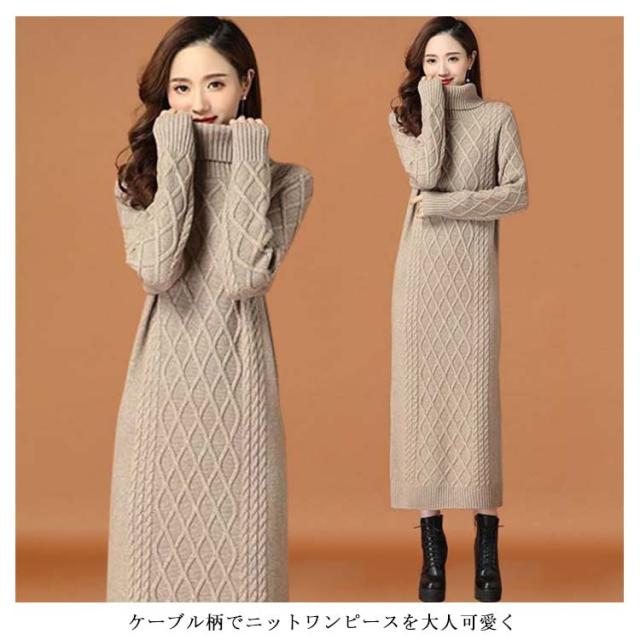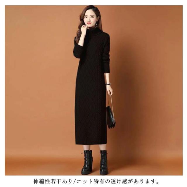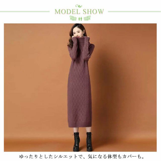 全7色5サイズ・送料無料! ロングワンピース ニットワンピース セーター レディース タートルネック ロング ワンピース ニットワンピ ニット マキシ丈 長袖 秋冬 大きいサイズ 体型カバー ゆるニットワンピース ケーブル編み ルームウェア 無地