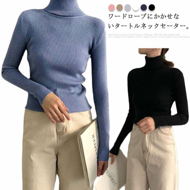 ニットセーター タートルネックセーター レディース ニット セーター リブ 長袖 トップス プルオーバー スリム 着痩せ インナー ショート丈 無地 秋冬 通勤 通学 カジュアル 柔らかい フリーサイズ